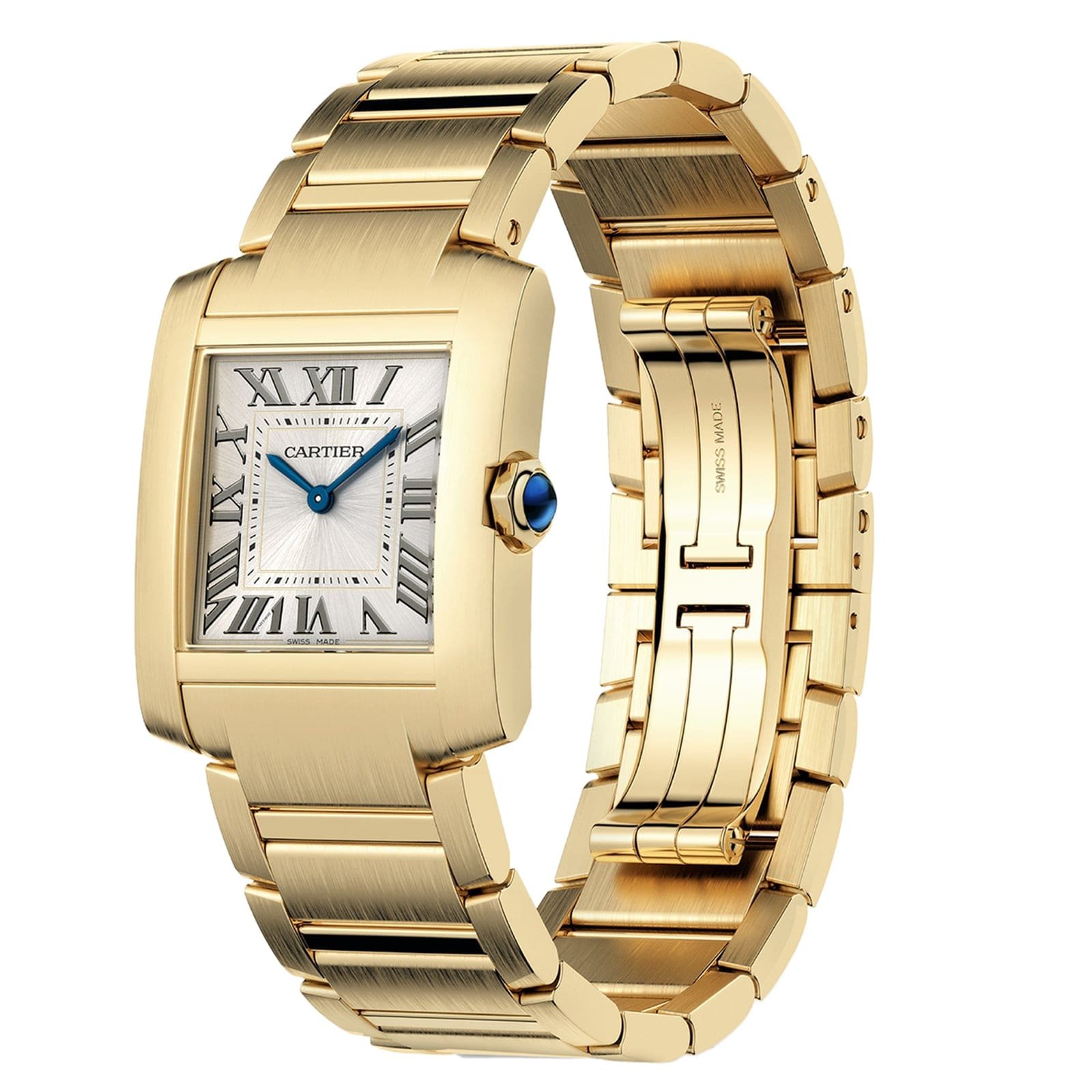 Tank Française – legendary heritage Tank collection lineage dating back to 1917 Striking golden sunray dial with Roman numeral markers and blued steel hands Presented in a 32mm yellow gold case with a faceted crown Secured with a yellow gold bracelet LEGENDARY STATUS The first Tank watch was expertly crafted by Cartier in 1917 as a gift to General Pershing of the American army during World War 1. Since then, the Tank collection has gone on to become a legendary symbol of timekeeping mastery – with bold, distinctive shapes, luxurious materials and unparalleled style. The Tank Française member of the Tank collection was launched in 1996, debuting a metal bracelet that works in perfect harmony with the case. This new, monobloc metal design, energises the ultra- profiled lines of the watch in both its aesthetic and ergonomic approach. GOLDEN RADIANCE Displayed on a robust yet sophisticated yellow gold bracelet, the 32mm yellow gold case features a faceted crown decorated with a synthetic cabochon-shaped spinel for an elegant look. The stunning golden sunray dial displays Roman numeral hour markers, with the collection’s iconic blued-steel sword- shaped hands for a bold finish. Prioritising both aesthetics and functionality, this model is powered by a high performance quartz movement for impeccable reliability and offers water resistance to 3 bar (30 metres).