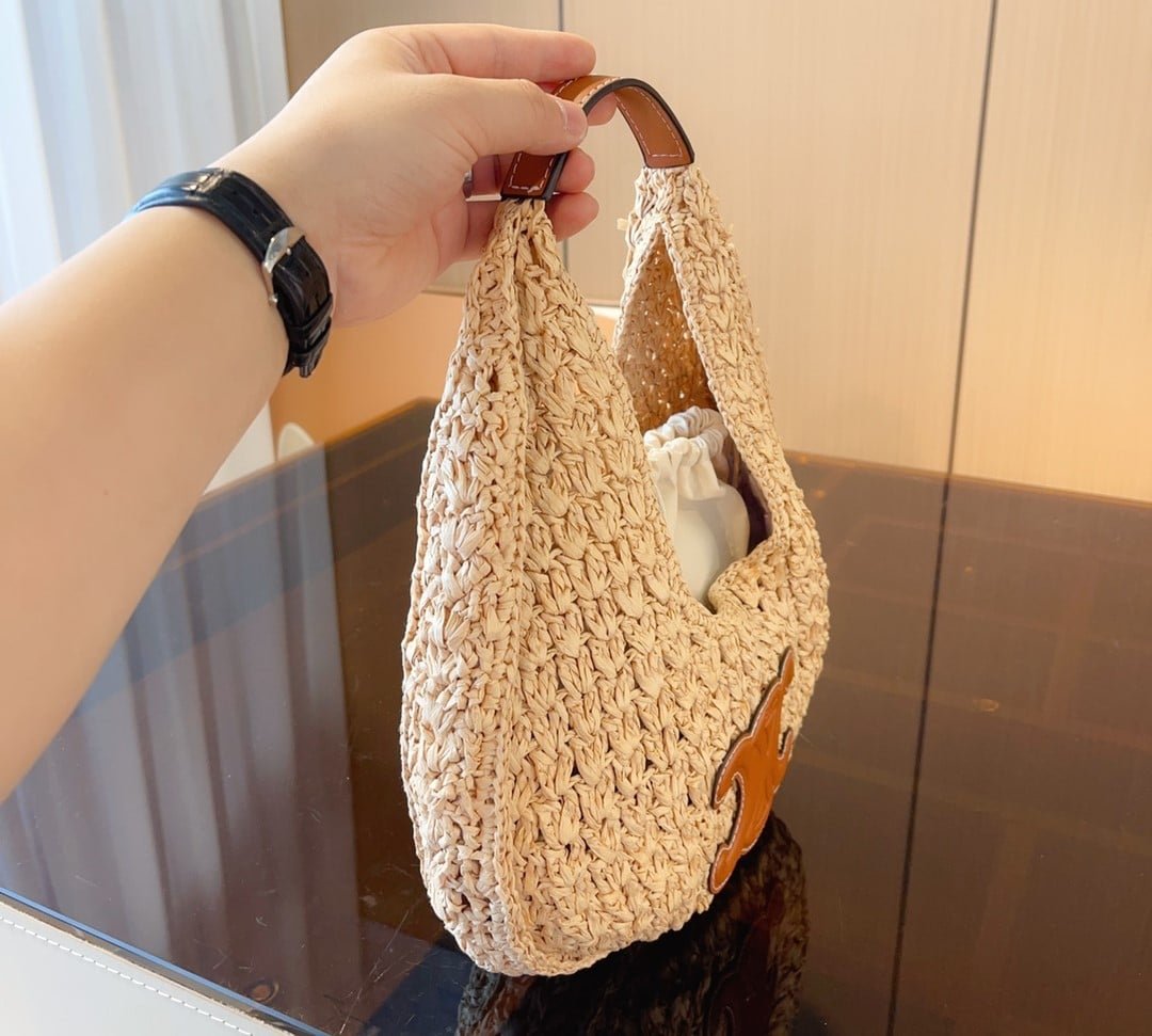 Celine Classic Panier Hobo Bag In Raffia And Calfskin Natural Tan 30Cm 112772Eyr 02Nt