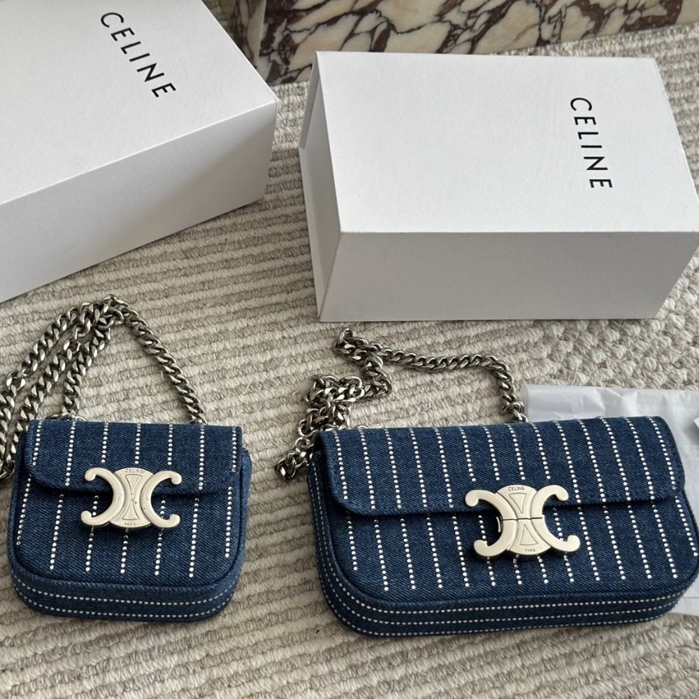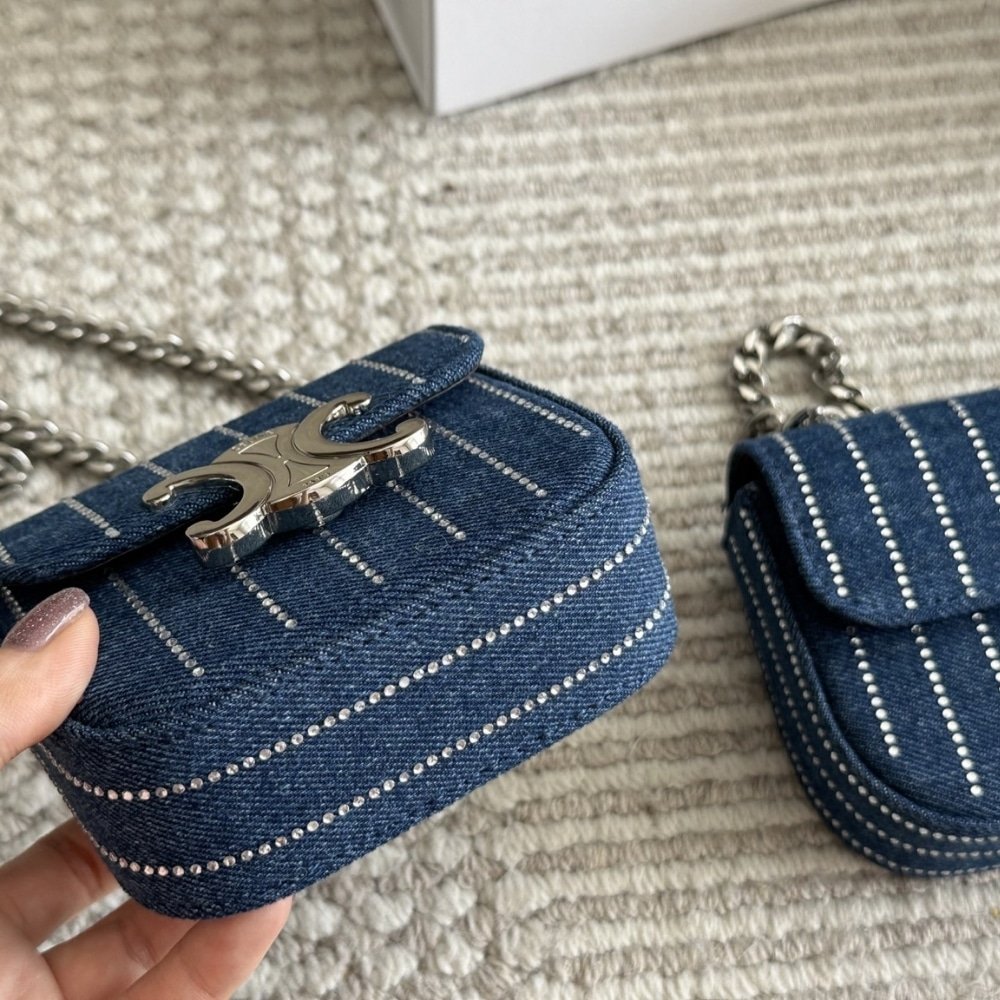 Celine Mini Chain Claude In Striped Denim With Strass Blue 12Cm 10L842Ggj 07Dd