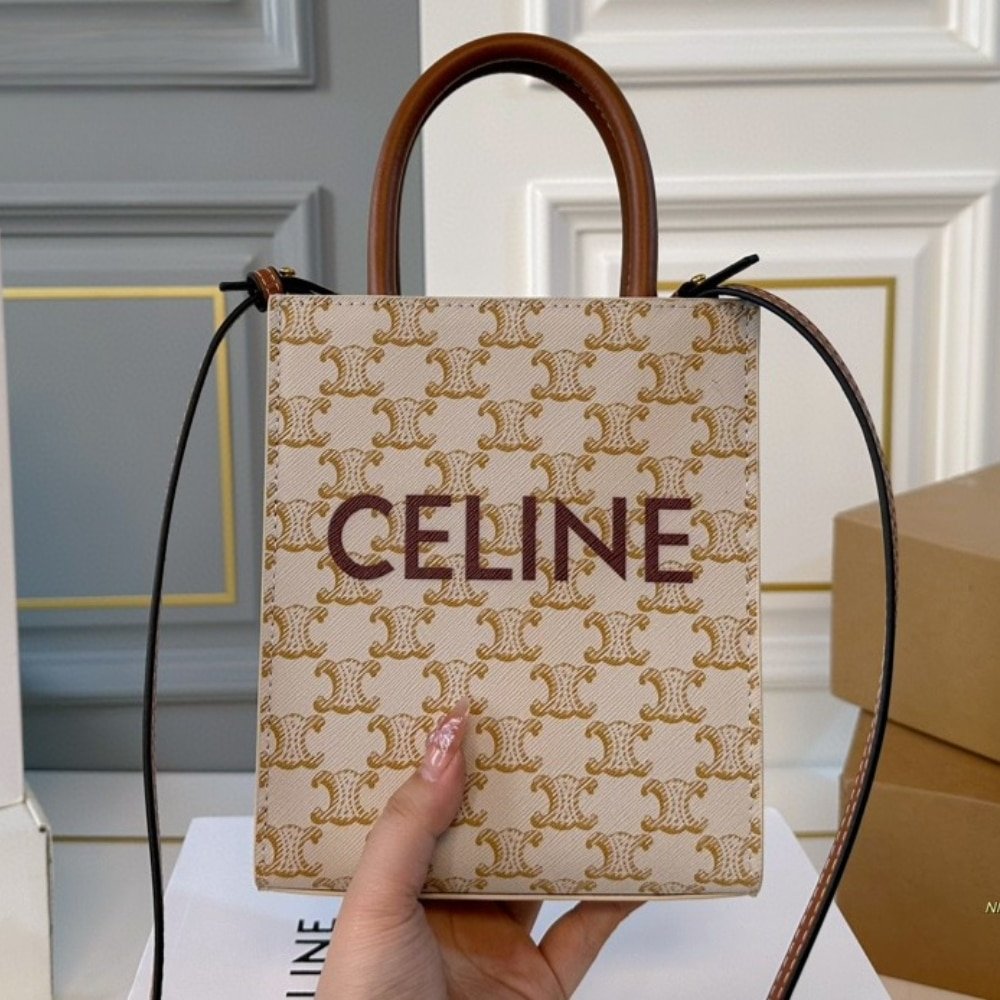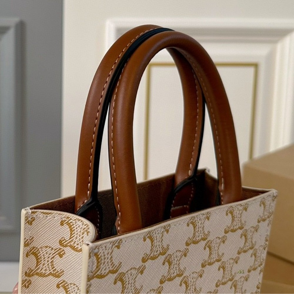 Celine Mini Vertical Cabas In Triomphe Canvas And Beige 17Cm