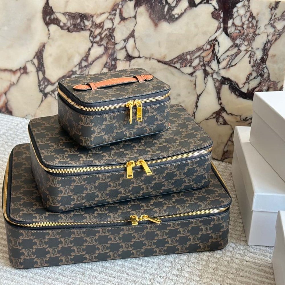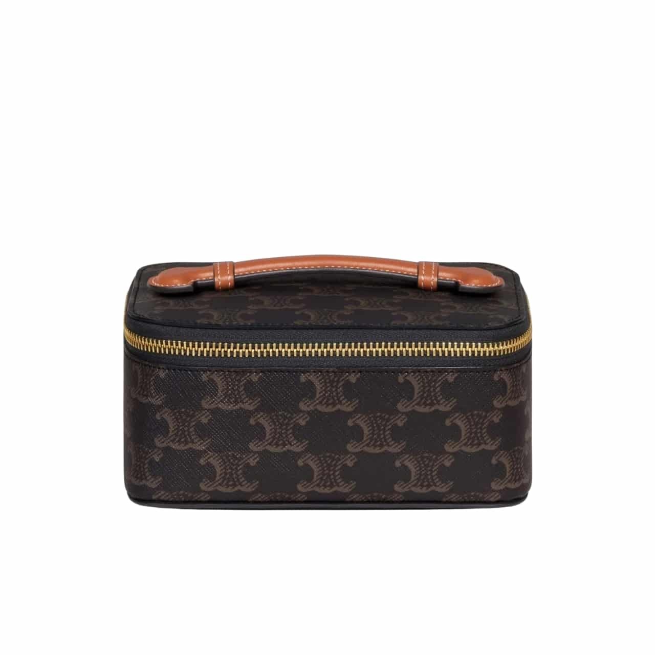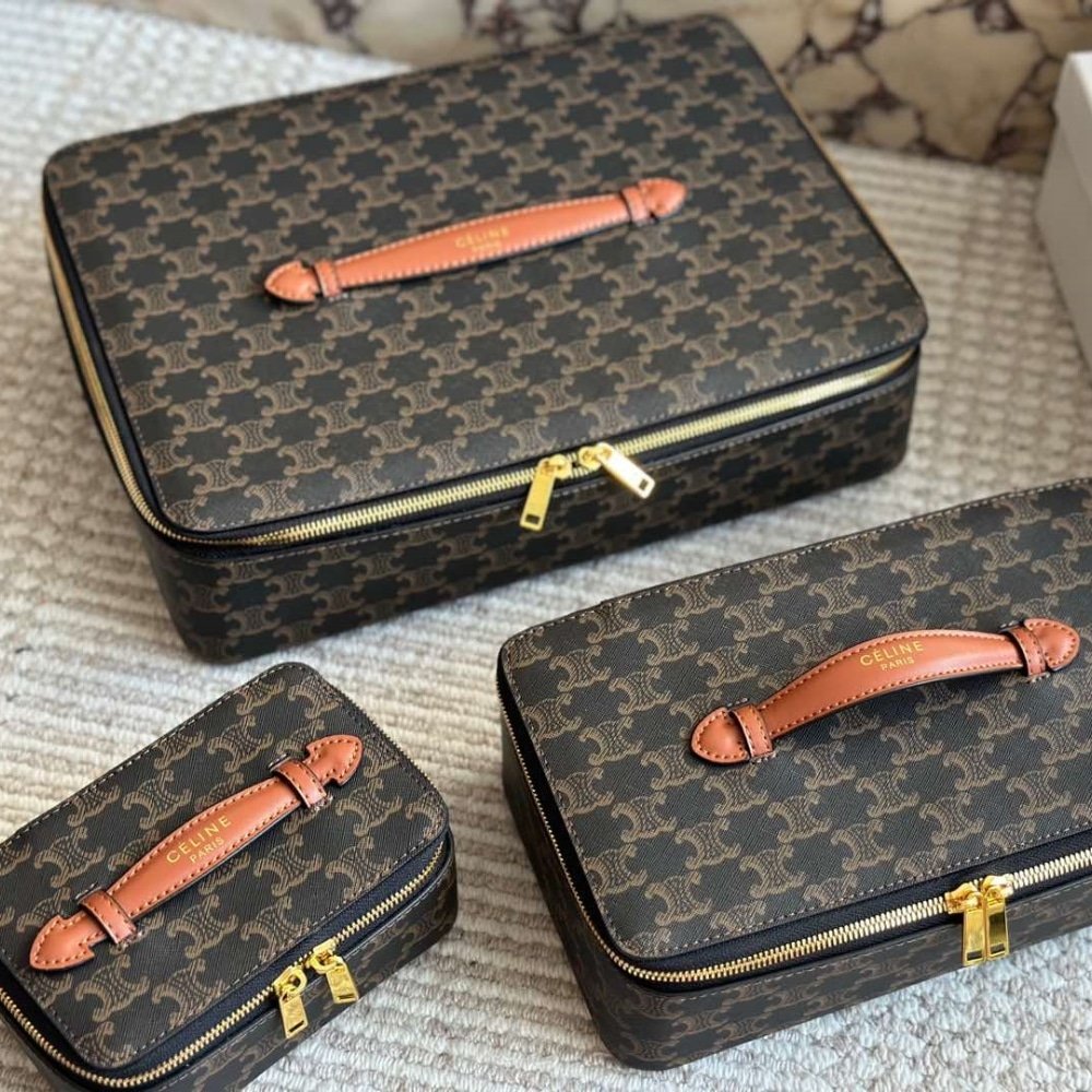 Celine Small Toiletry Case In Triomphe Canvas And Top Handle Bag 16Cm