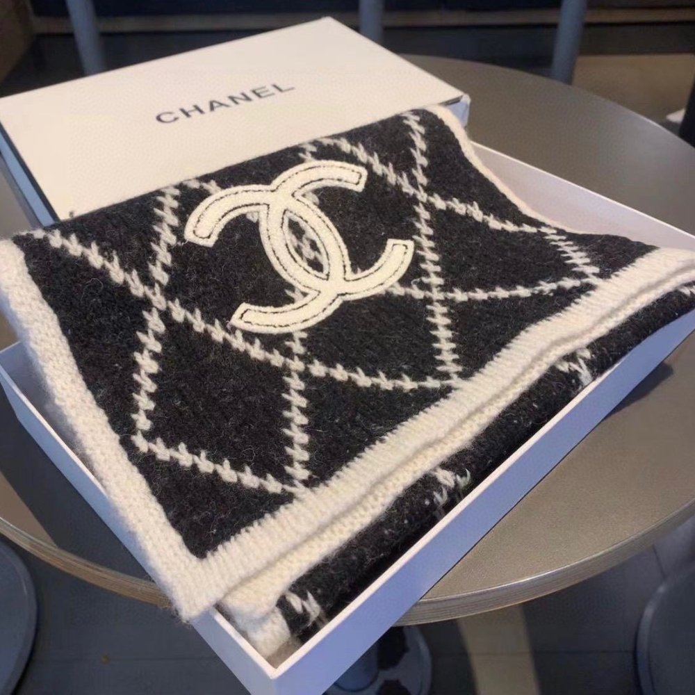 Chanel Cashmere Silk Quilted Cc Scarf Black White 195Cm