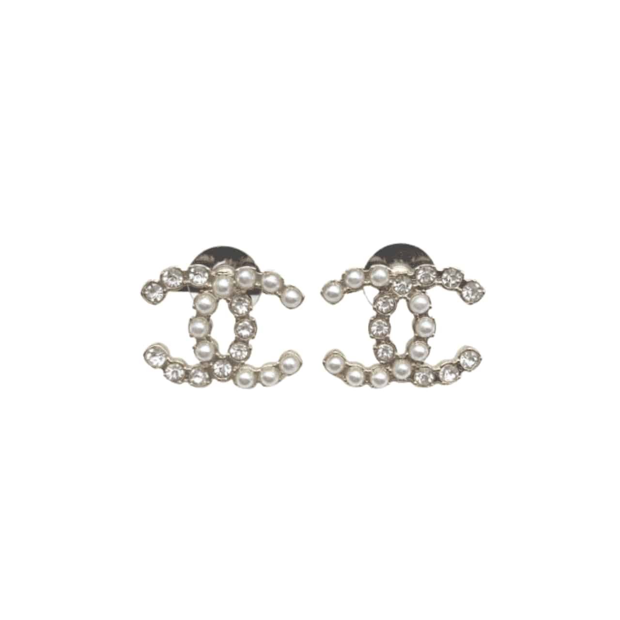 Chanel Cc Crystal Pearl Silver Earrings