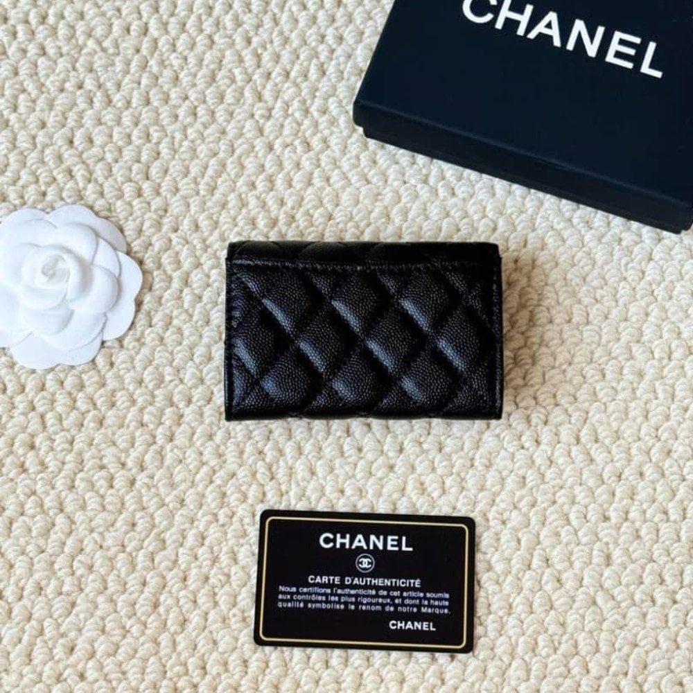 Chanel Classic Card Holder Grain Leather Black With Silver Hardware 11Cm Ap0214 Y01588 C3906