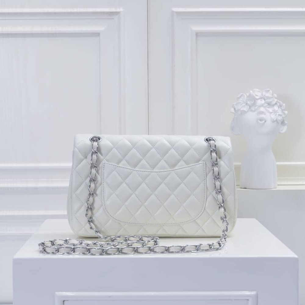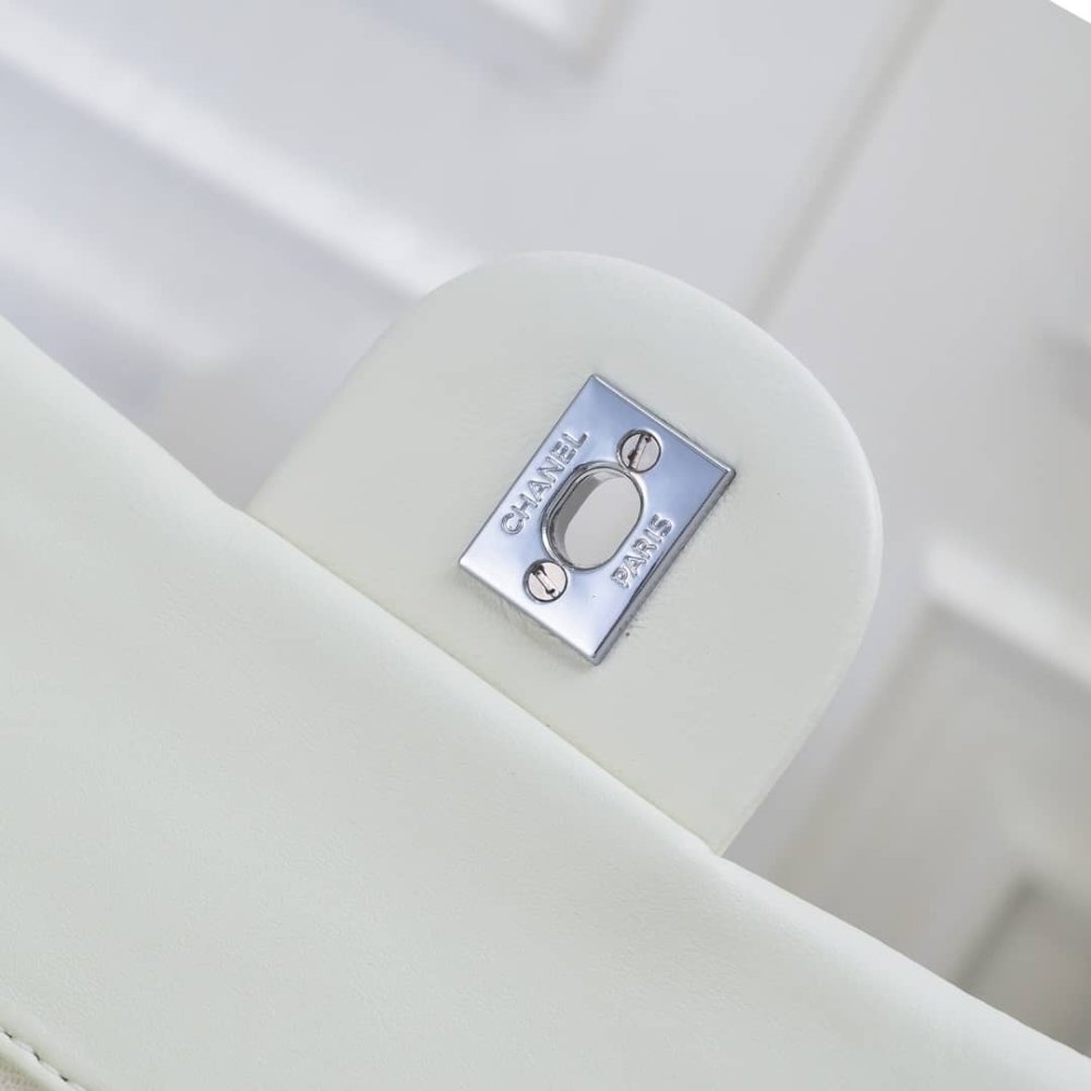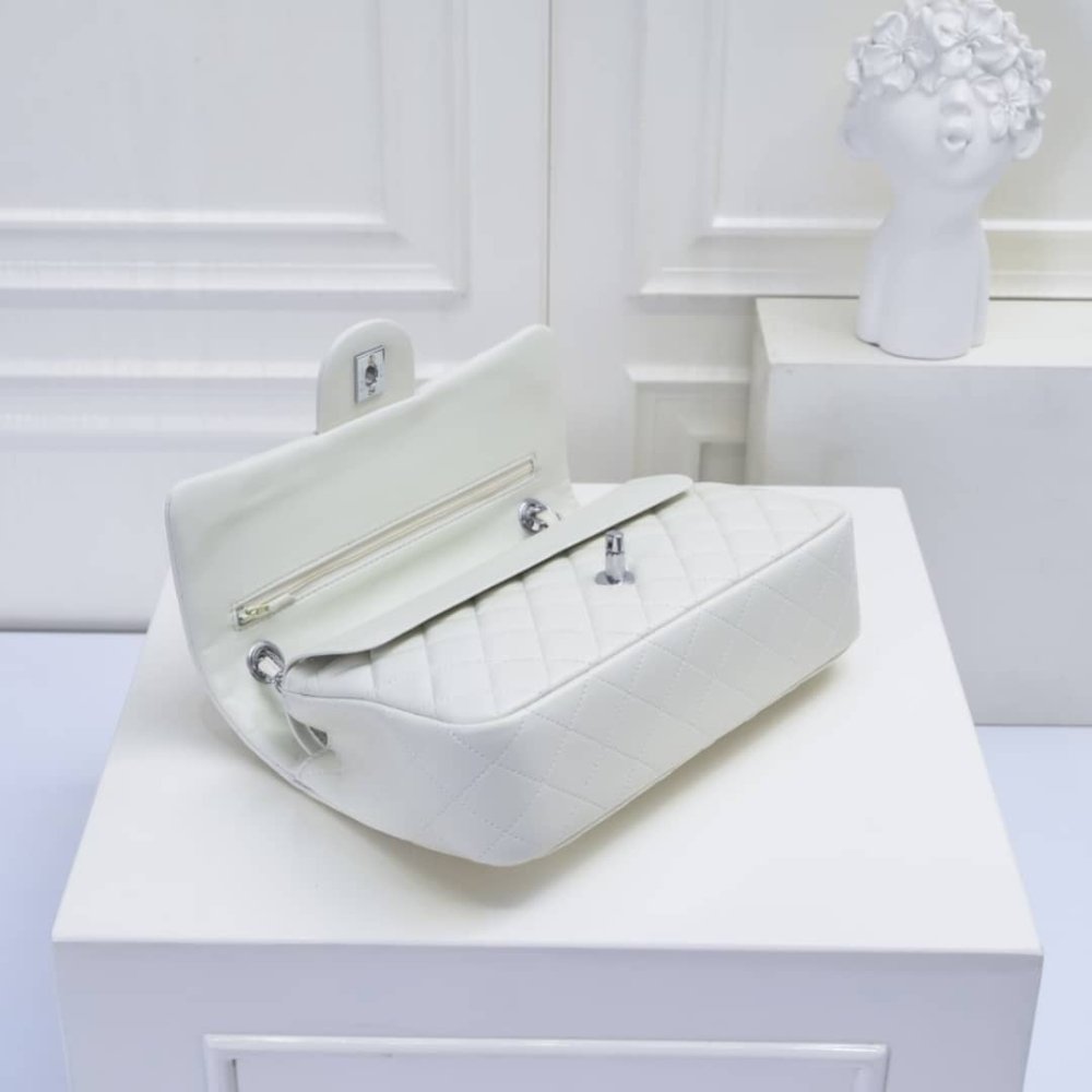 Chanel Classic Double Flap Bag White Silver Hardware 25Cm