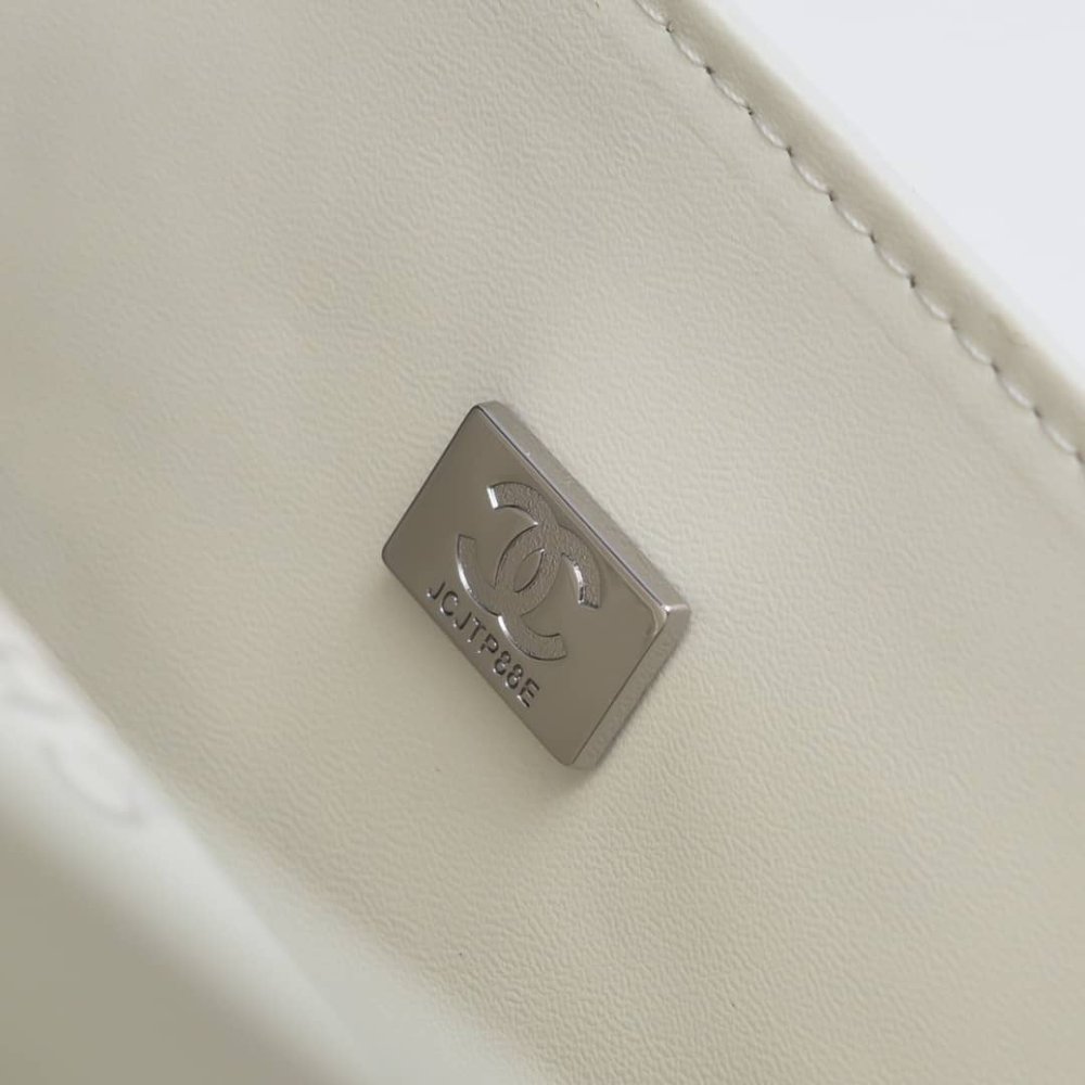Chanel Classic Double Flap Bag White Silver Hardware features the iconic quilted silhouette crafted from luxurious leather, accented with elegant silver-tone hardware. Designed with the signature double-flap construction, it offers timeless sophistication and practical organization. A true classic that elevates both everyday and evening looks with effortless elegance.