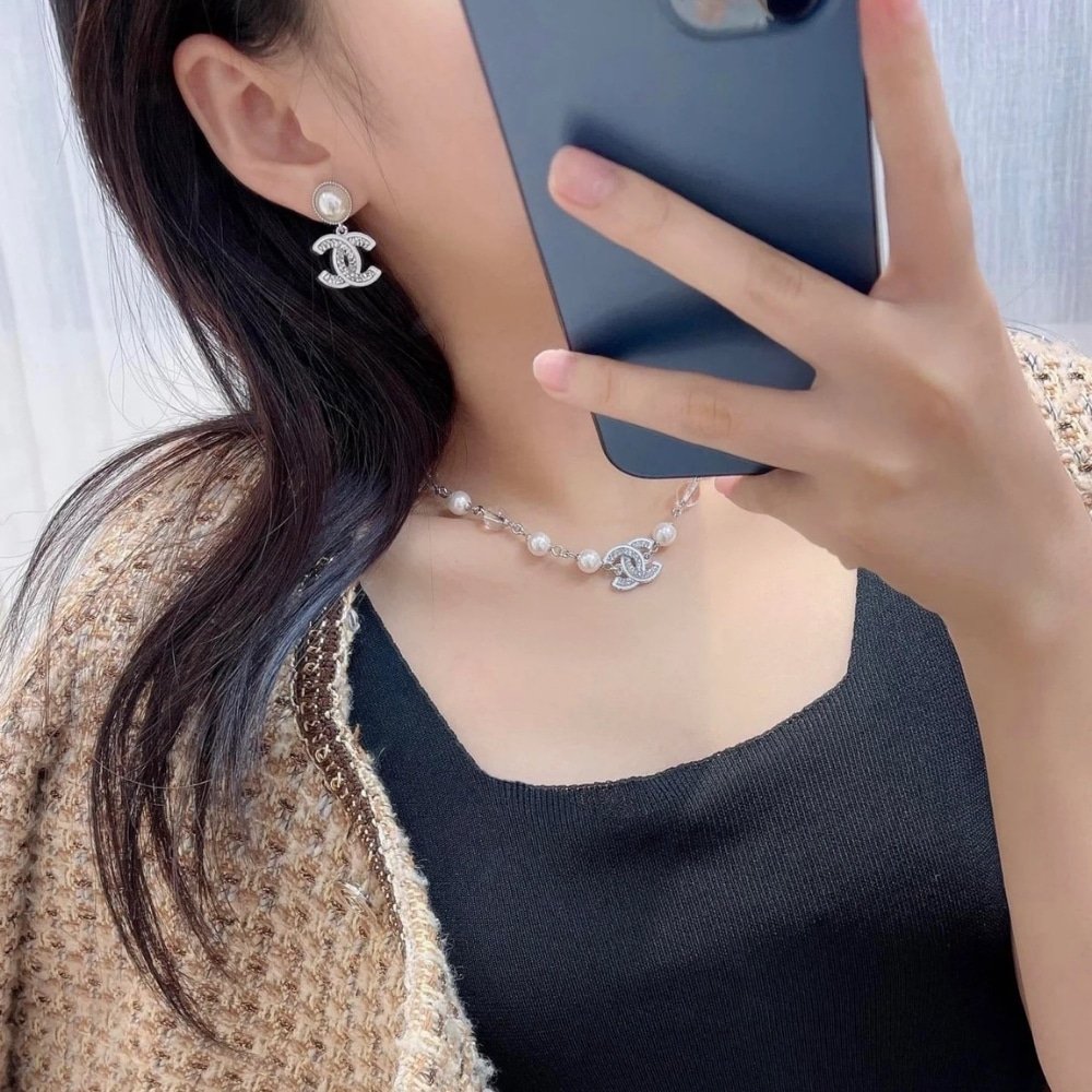 Be the first to review “Chanel Double C Pearl Earrings Silver White” Cancel reply