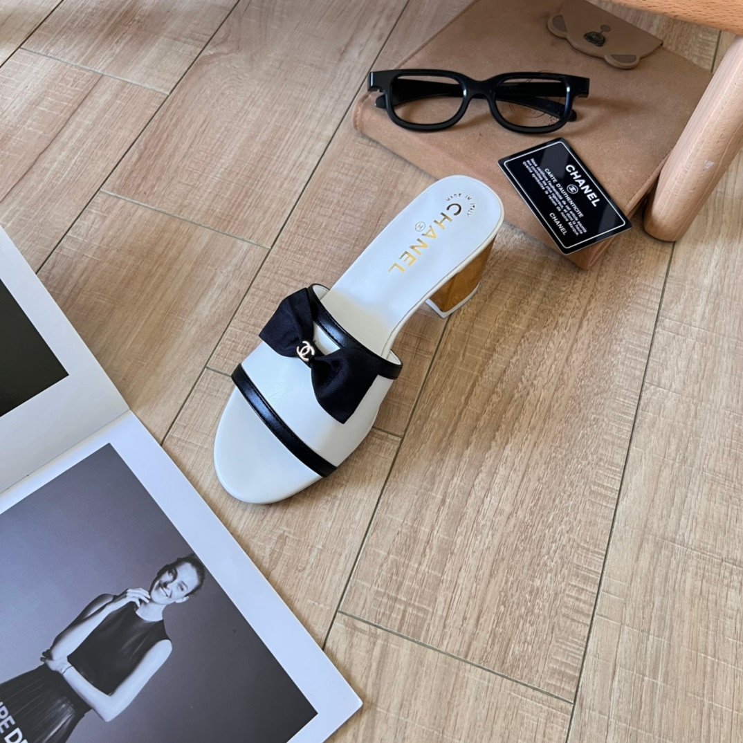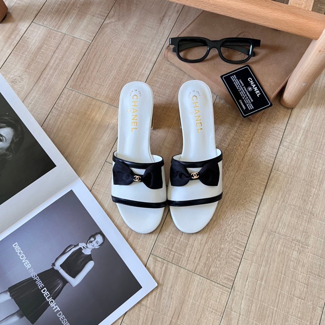 Chanel Grosgrain Ribbon Bow Mule Leather White