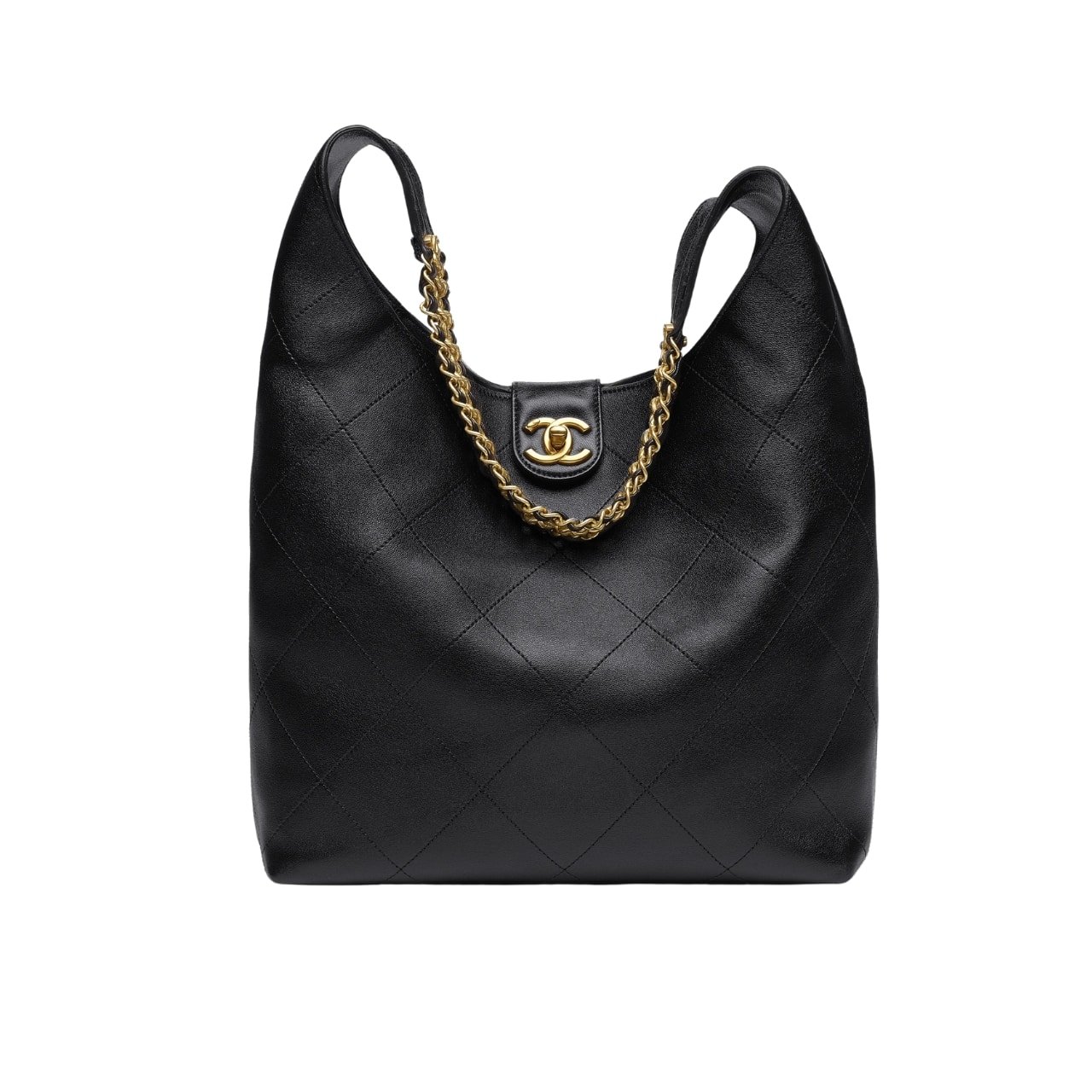 Chanel Large Hobo Bag Shiny Gold Tone Metal Black 21Cm As5410 B19776 94305