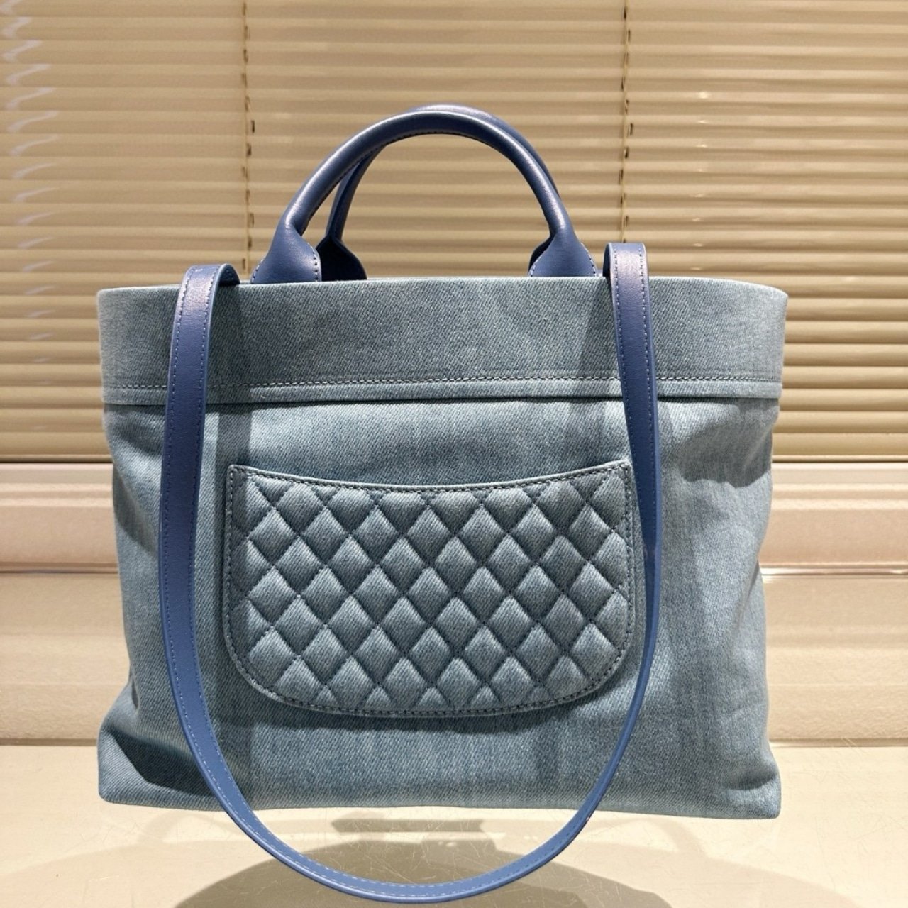 Chanel Paris Book Tote Two Way Shoulder Bag Denim Blue 35Cm