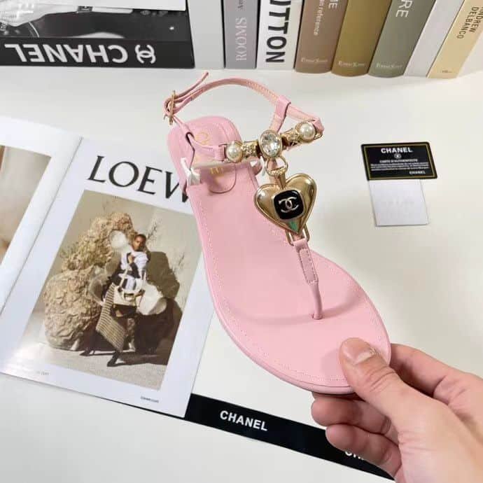 Be the first to review “Chanel Shiny Pearl Crystal Cc Heart Thong Sandals Light Pink” Cancel reply
