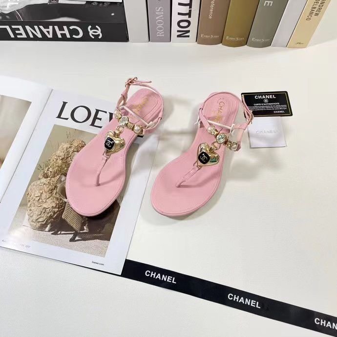 Chanel Shiny Pearl Crystal Cc Heart Thong Sandals Light Pink