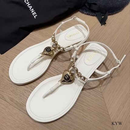 Chanel Shiny Pearl Crystal Cc Heart Thong Sandals White G39674 X01000 0S082