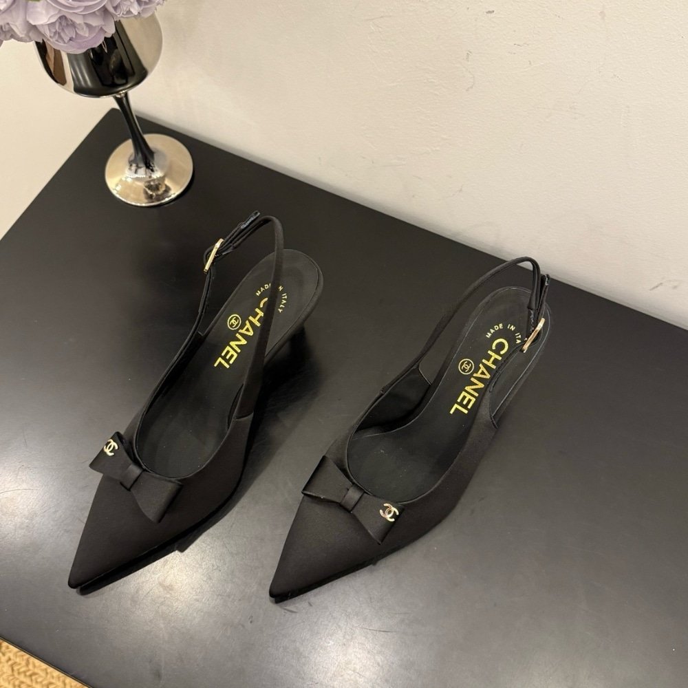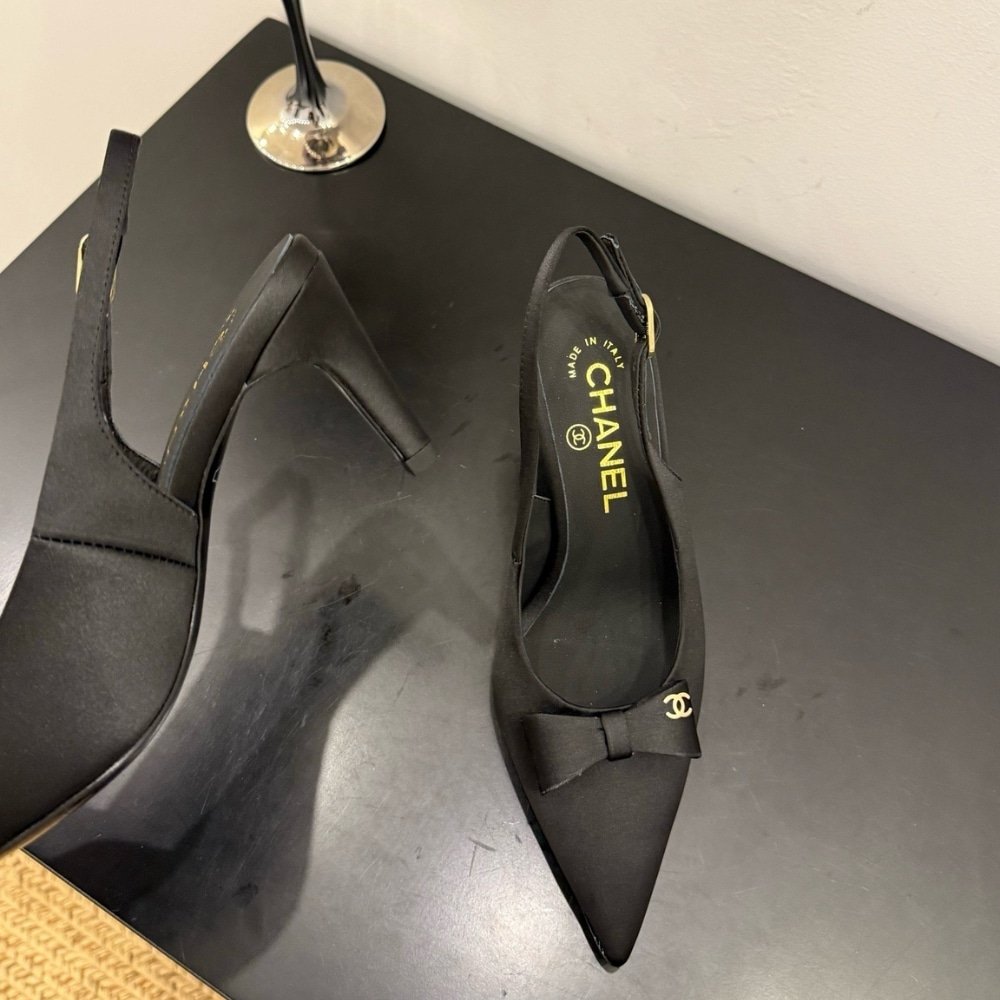 Chanel Slingback Satin Fabric Black G46547 B20974 94305