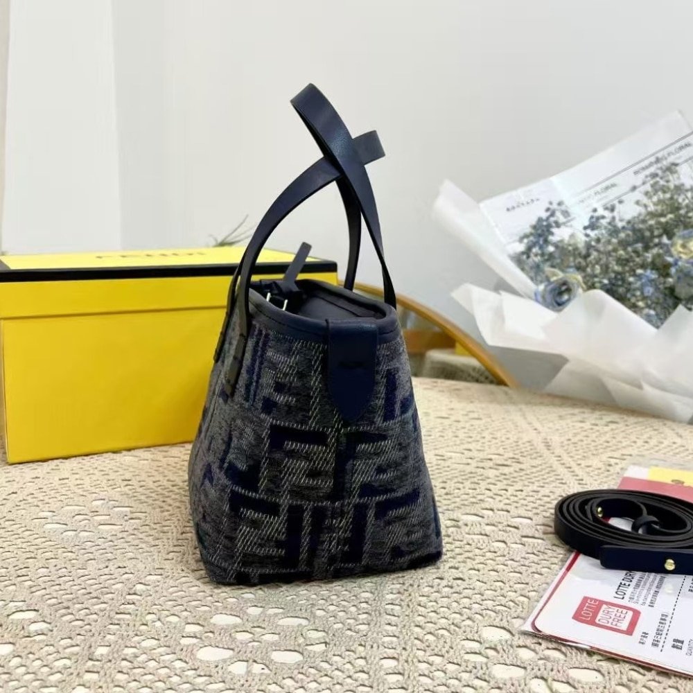 Fendi Roll Mini Ff Chenille Bag Dark Blue 16Cm 8Bs096Asu1F1Pqk