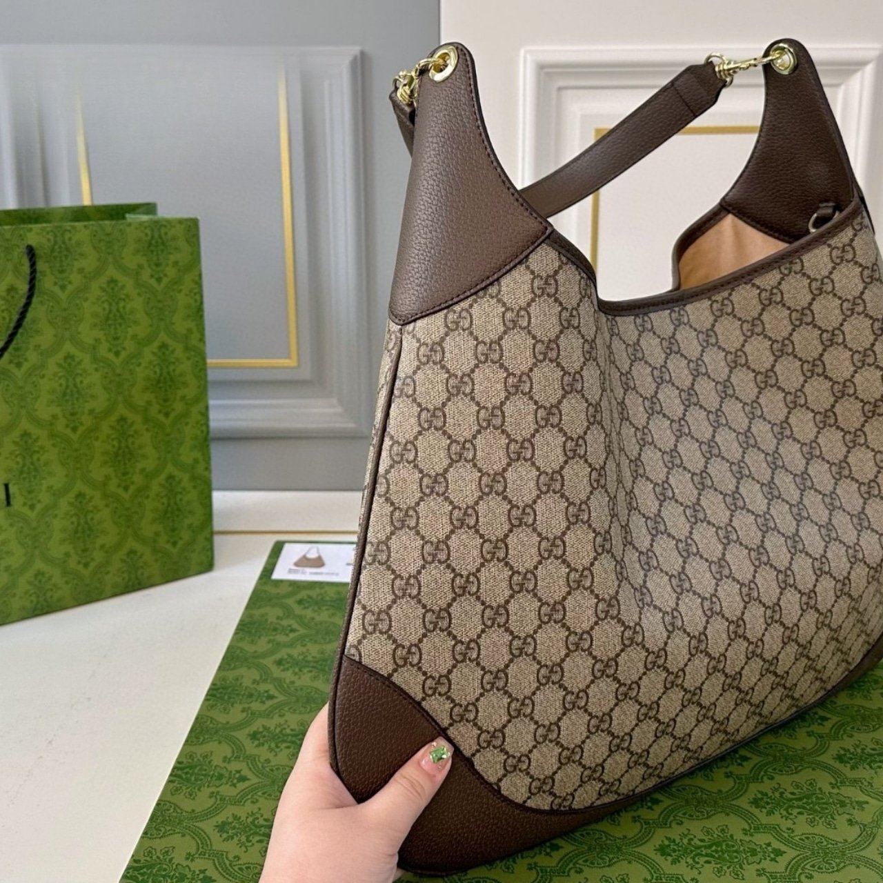 Be the first to review “Gucci B Large Shoulder Bag Beige And Dark Grey 50Cm” Cancel reply