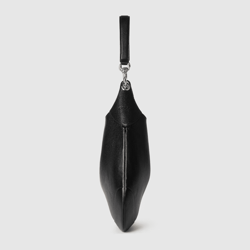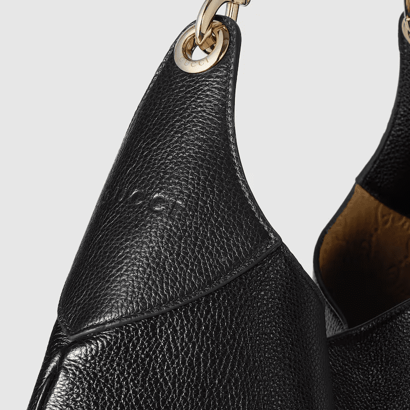 Introducing the Gucci B, which draws inspiration from a 1950s archival style. This medium shoulder bag, embodying the essence of its mid-20th century design origins, is crafted from soft grainy leather which drapes on the body.