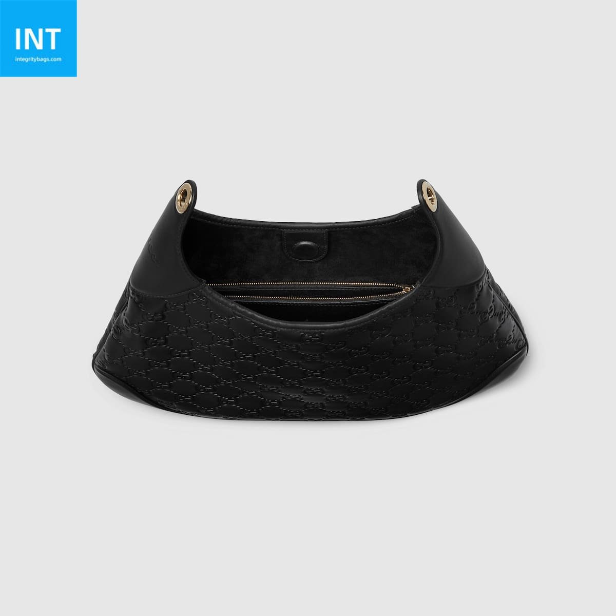 - Black GG embossed leather