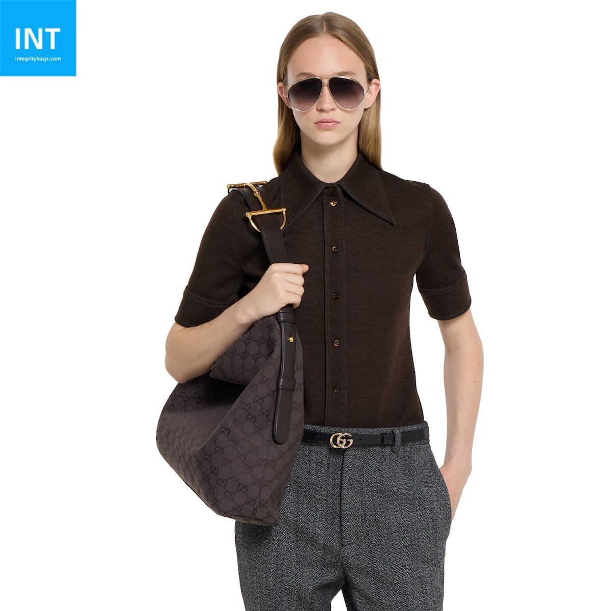 In the Fall Winter 2025 collection, the Gucci Beatrix handbag features a relaxed silhouette elevated by the signature Horsebit detail on the shoulder strap. The gold-toned hardware enhance its refined feel, while a zip pocket inside keeps essentials secure. Elegant yet functional, it’s designed to carry your everyday must-haves with ease.