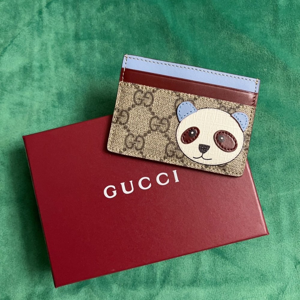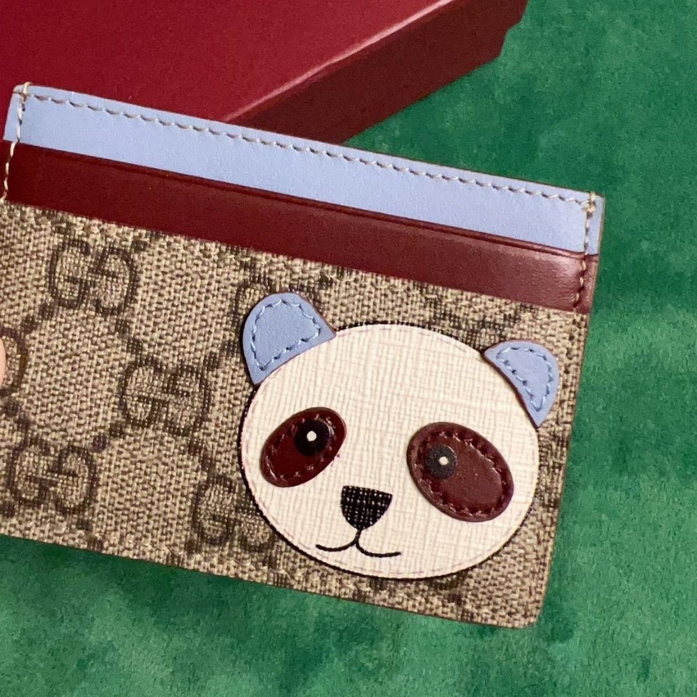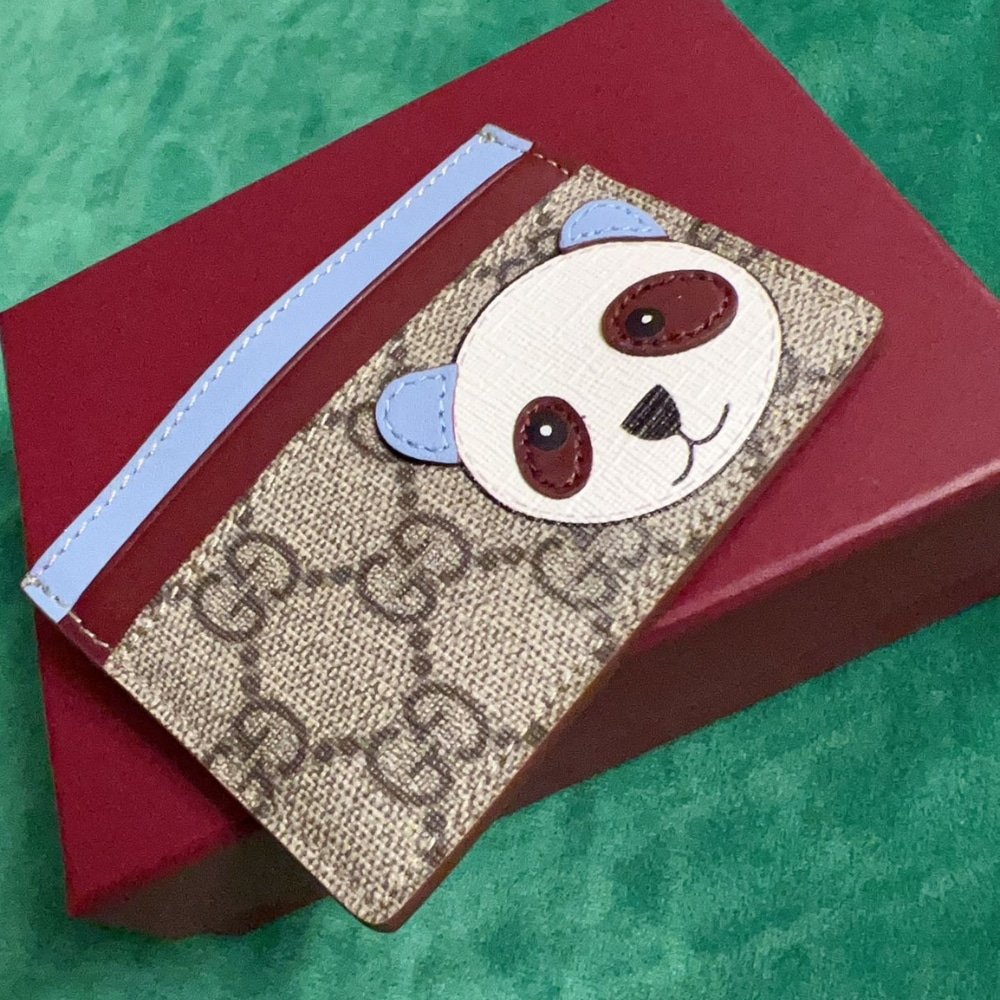 Gucci Bi-Color Gg Card Case With Panda Detail Beige Ebony 11Cm