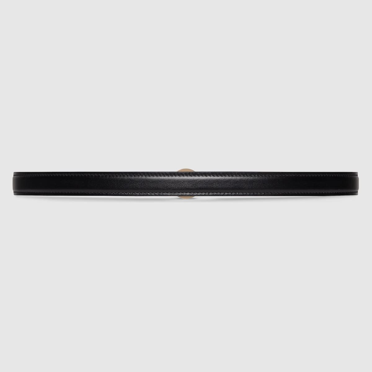 Taking inspiration from archival elements, the Round Interlocking G logo continues to define a selection of leather accessories. The 1970s inspired logo appears on this black leather belt.