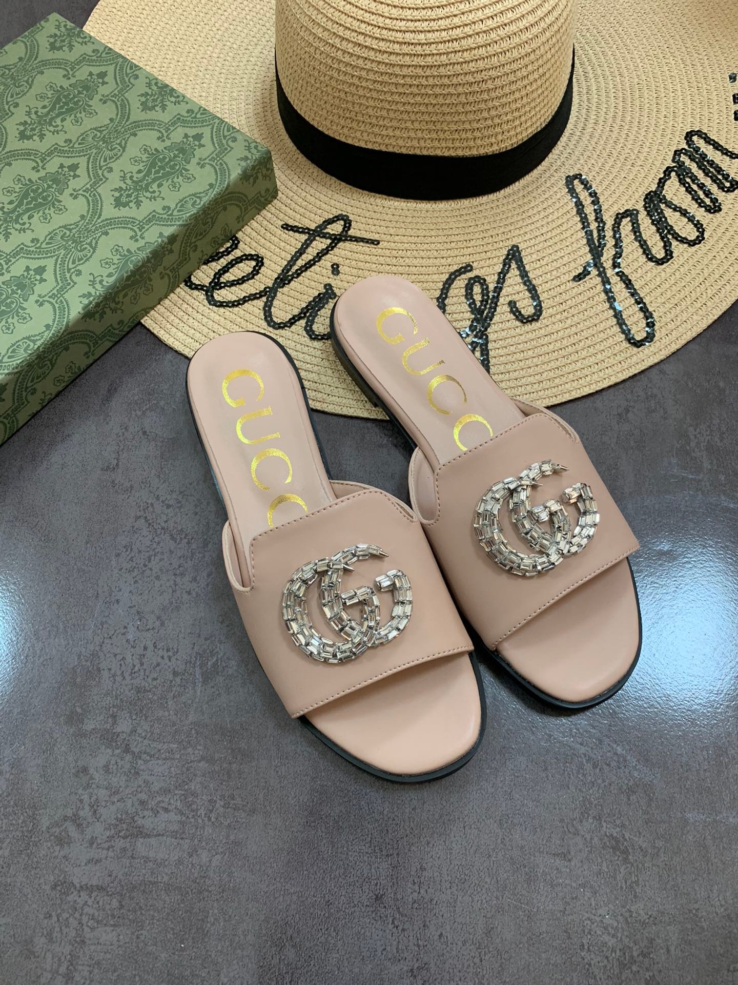 Be the first to review “Gucci Double G Slippers Leather Beaded In Beige” Cancel reply