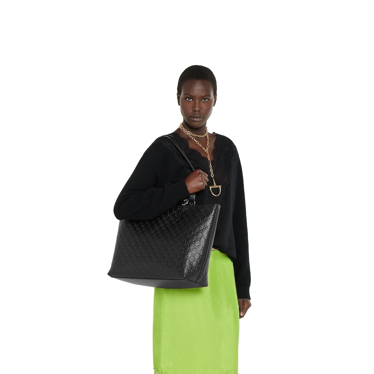 - Black embossed GG leather