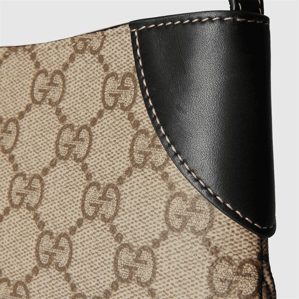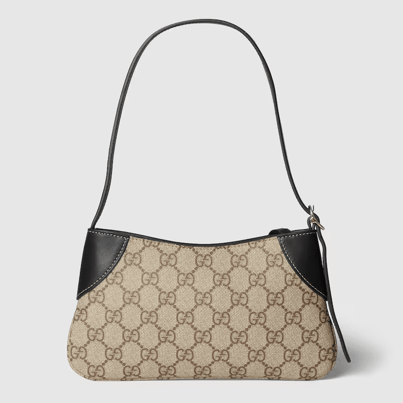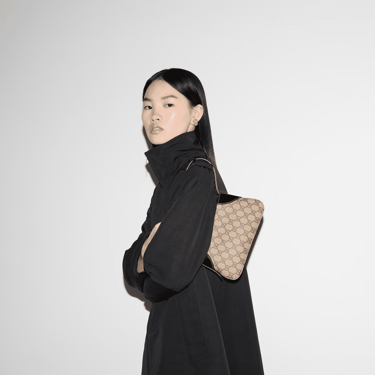 The GG Emblem collection reinterprets signature motifs through creativity and innovative functions, and is envisioned to be cherished for years to come. Introduced in the latest line of small accessories, this beige and dark brown small shoulder bag is crafted from the new GG Monogram fabric. Featuring a black leather trim, the design comes with an adjustable shoulder strap.