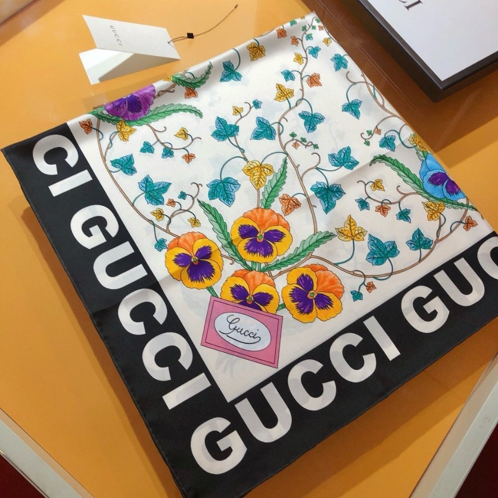 Gucci Floral Print Silk Scarf In Ivory In Black And White 90Cm 7438763G0019260