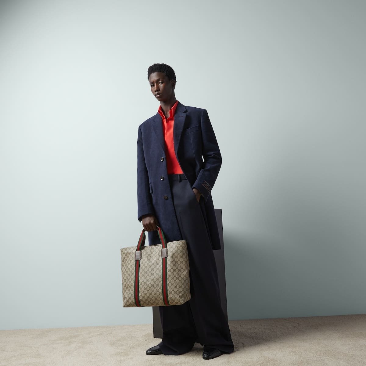 The GG Supreme Tender canvas, with its soft material and durable characteristics, lends itself well to the men’s accessories line, adding a modern feel to established House designs. The emblematic green and red Web further enhances this tote bag.