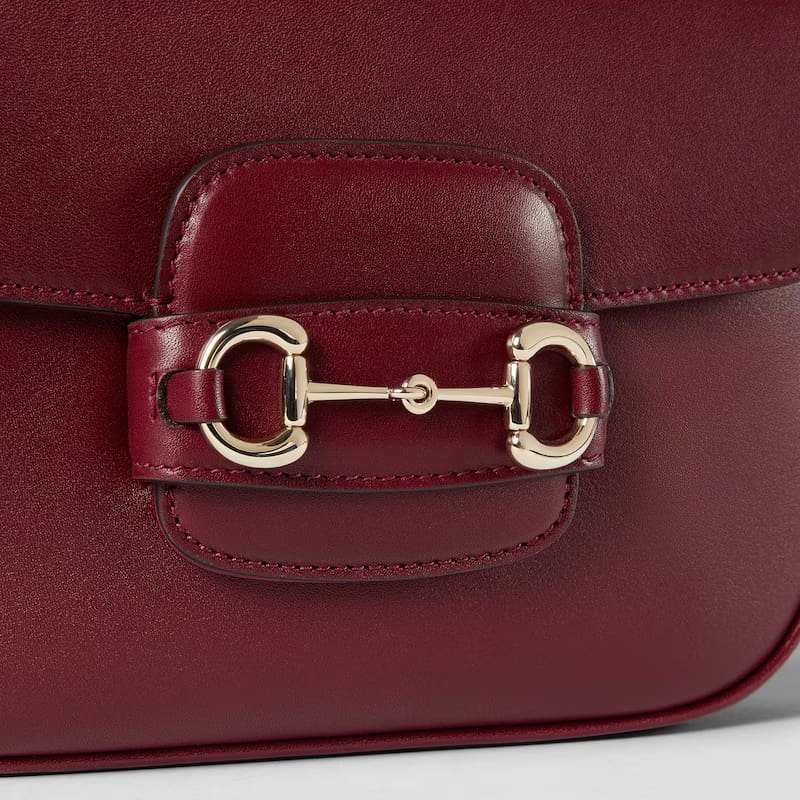 The Gucci Horsebit 1955 Soft continues to highlight its iconic double ring and bar hardware. This mini shoulder bag style is crafted from Gucci Rosso Ancora red soft leather with natural shine.