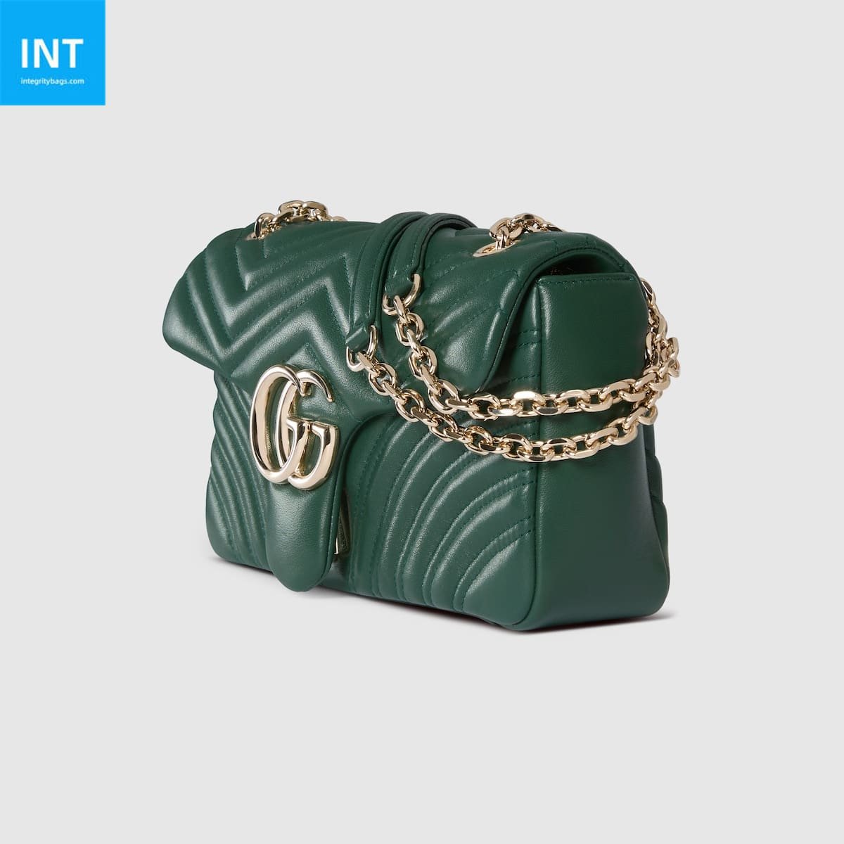 - Green matelassé chevron nappa leather