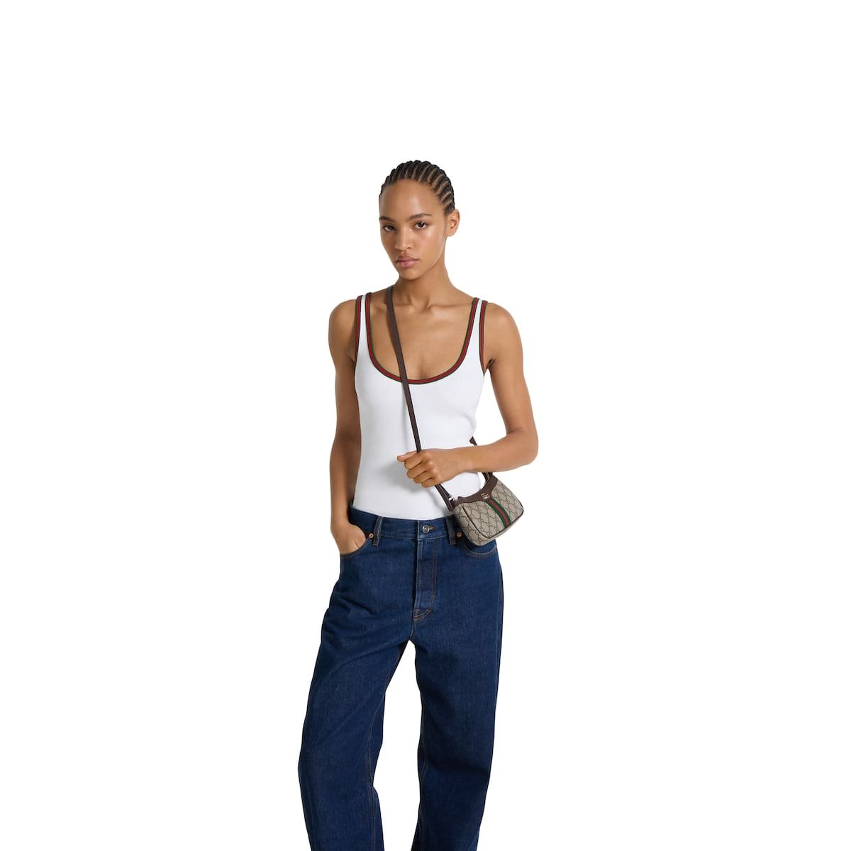 The Ophidia collection evokes the House’s heritage with the signature Web stripe and Double G emblem in light gold-toned finish. The styles are crafted from soft GG Monogram coated fabric, featuring green cotton lining inside.