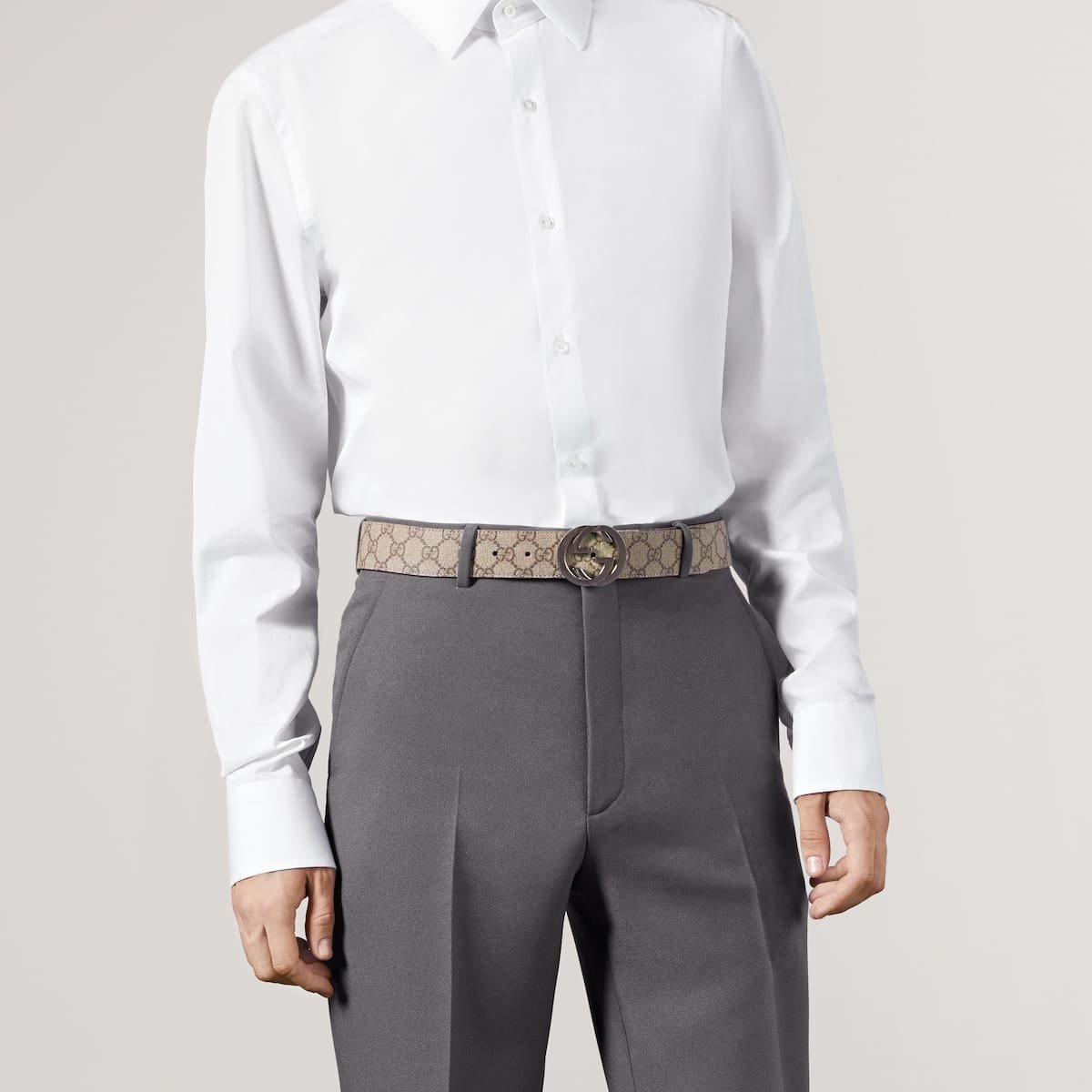 A reversible belt with GG Supreme canvas on one side and solid leather on the reverse. Finished with the interlocking G buckle.