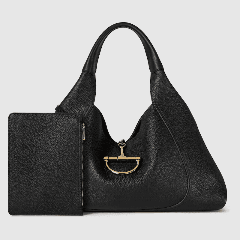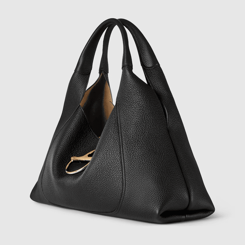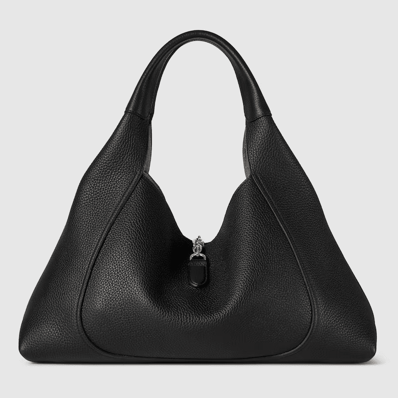 The new Gucci Softbit shoulder bag reimagines the House’s signature hardware as an oversized half Horsebit. It is both aesthetic and functional as the magnetic closure of the relaxed silhouette, crafted from supple, grainy leather with a rich texture.