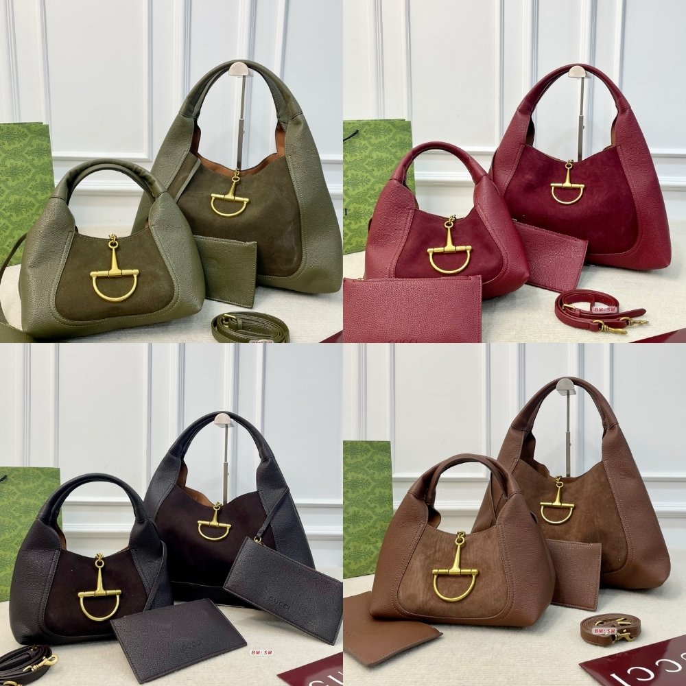 The Gucci Softbit Maxi Suede Shoulder Bag in Brown is oversized hobo bag from the Pre-Fall 2025 collection, designed by former Creative Director Sabato De Sarno. This model reimagines archival House codes with a contemporary triangular silhouette and the iconic half-horsebit hardware.