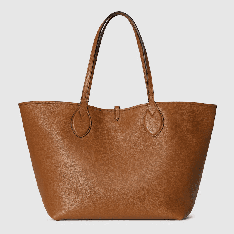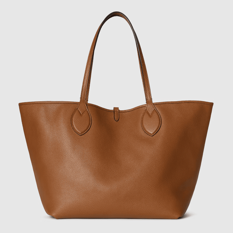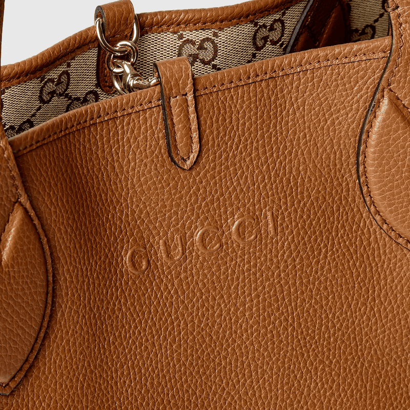 Introducing a reversible style with two distinct looks in one piece, this Gucci Totissima is crafted with grainy leather on one side, and GG canvas on the other. ‘Totissima’ blends the word tote with the Italian superlative, ‘the most’, emphasizing the bag’s functionality and enduring style.