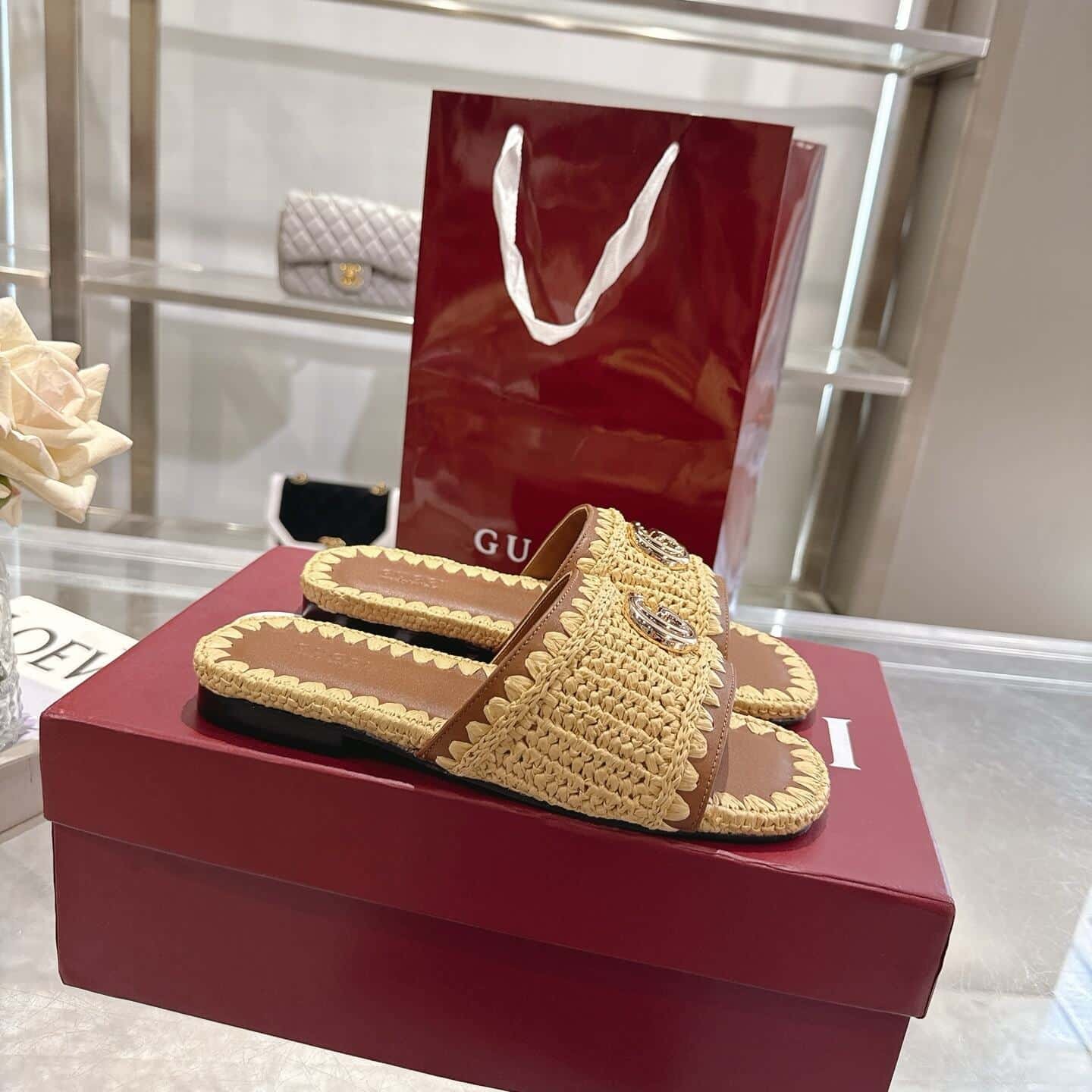 Be the first to review “Gucci Women Slide Sandal With Double G Raffia Crochet 835084 Faeq3 9642” Cancel reply