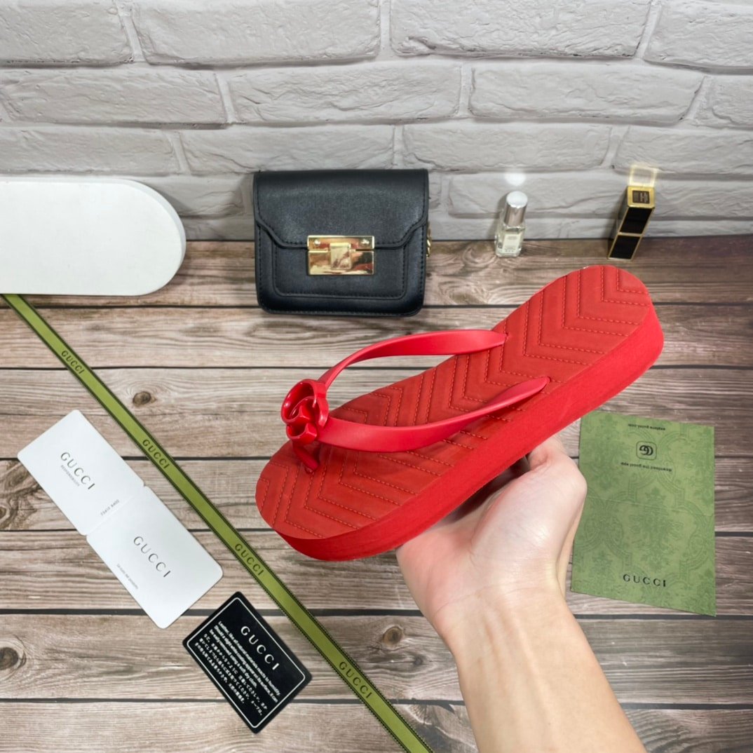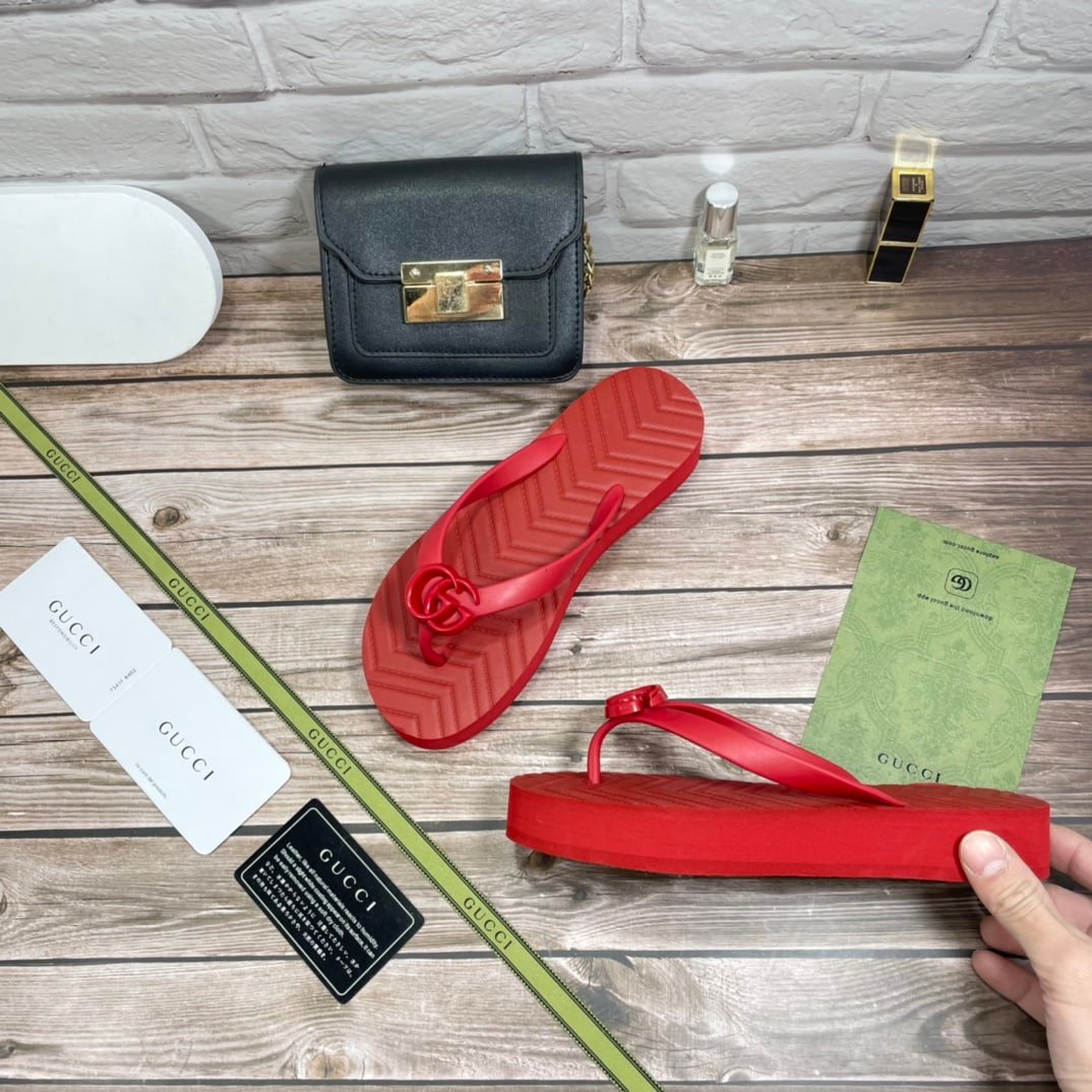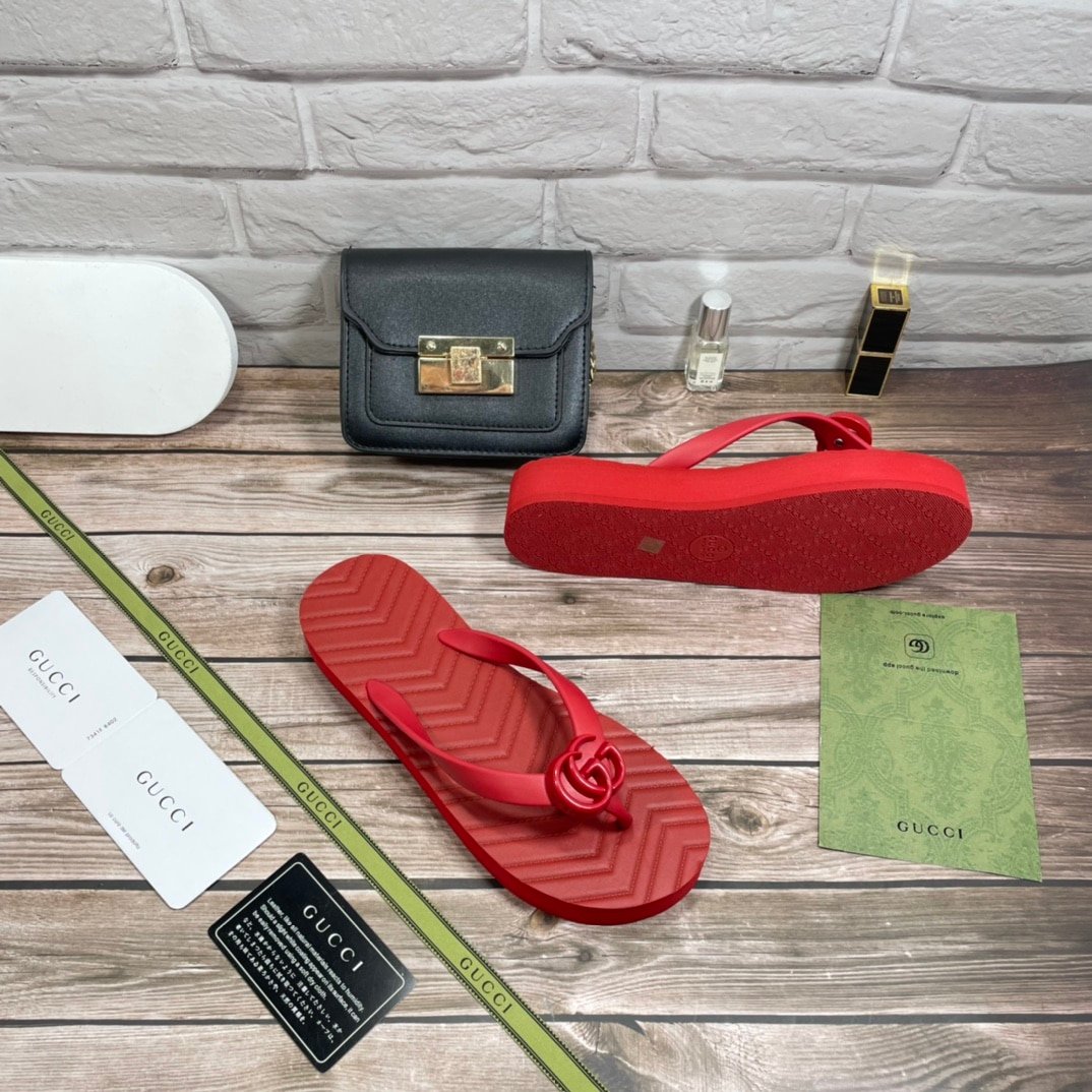 Gucci Women’S Chevron Thong Sandal Hibiscus Red Rubber 655463 J8710 6433