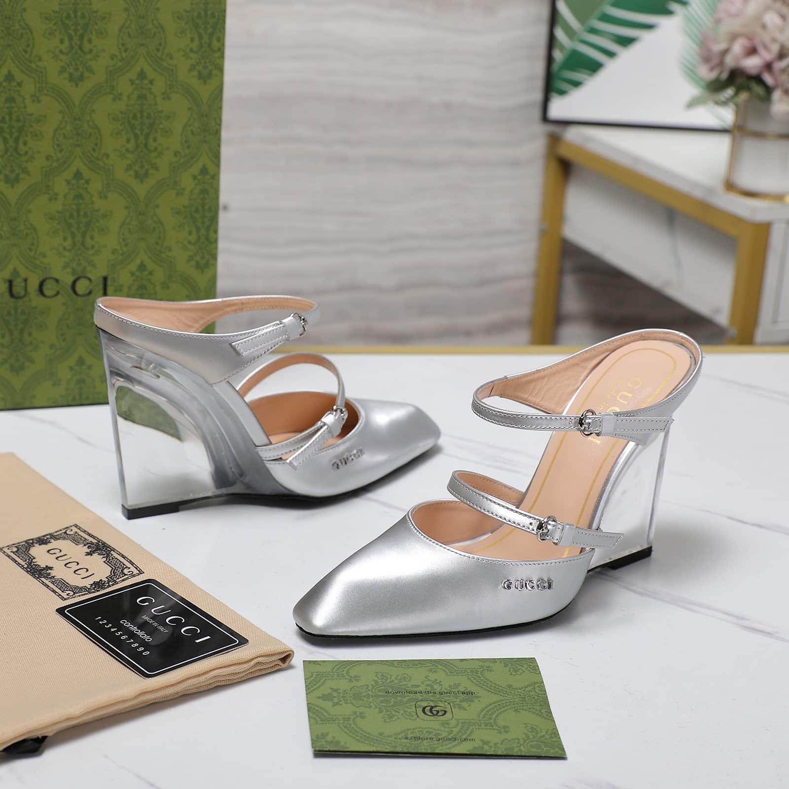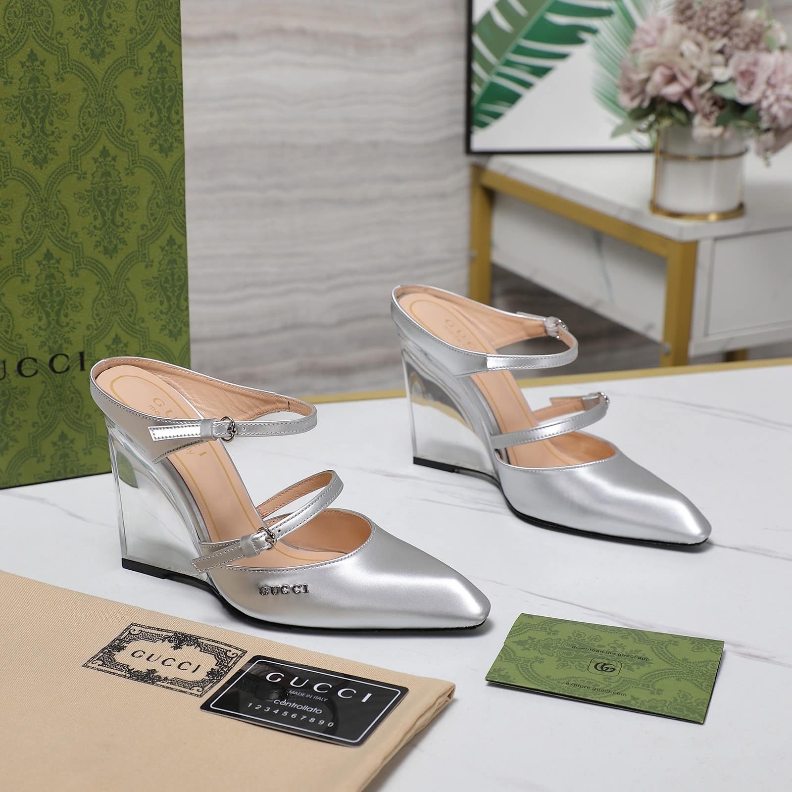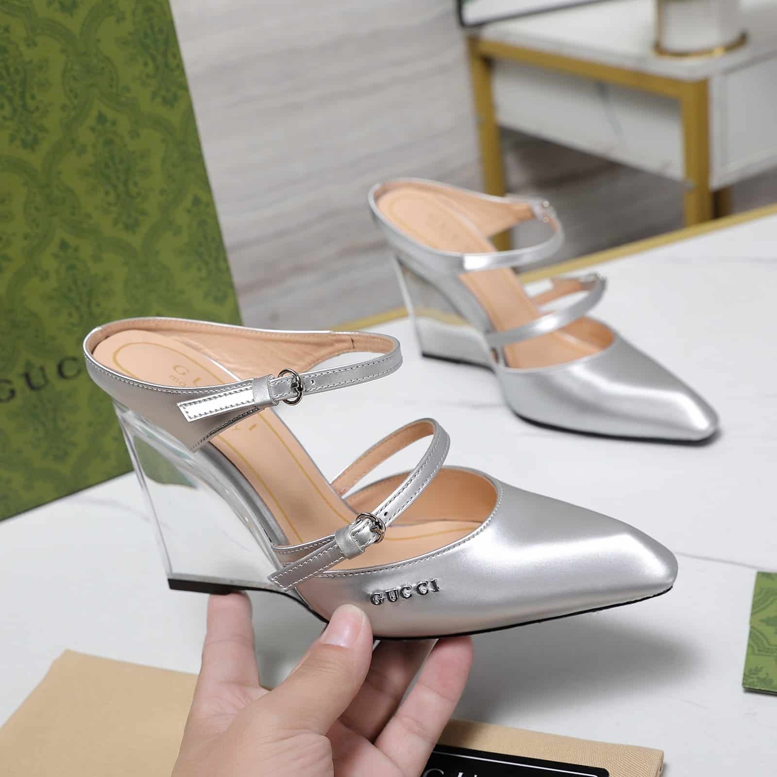 Gucci Women’s Wedge Mule Silver 828030 Aabu5 8106
