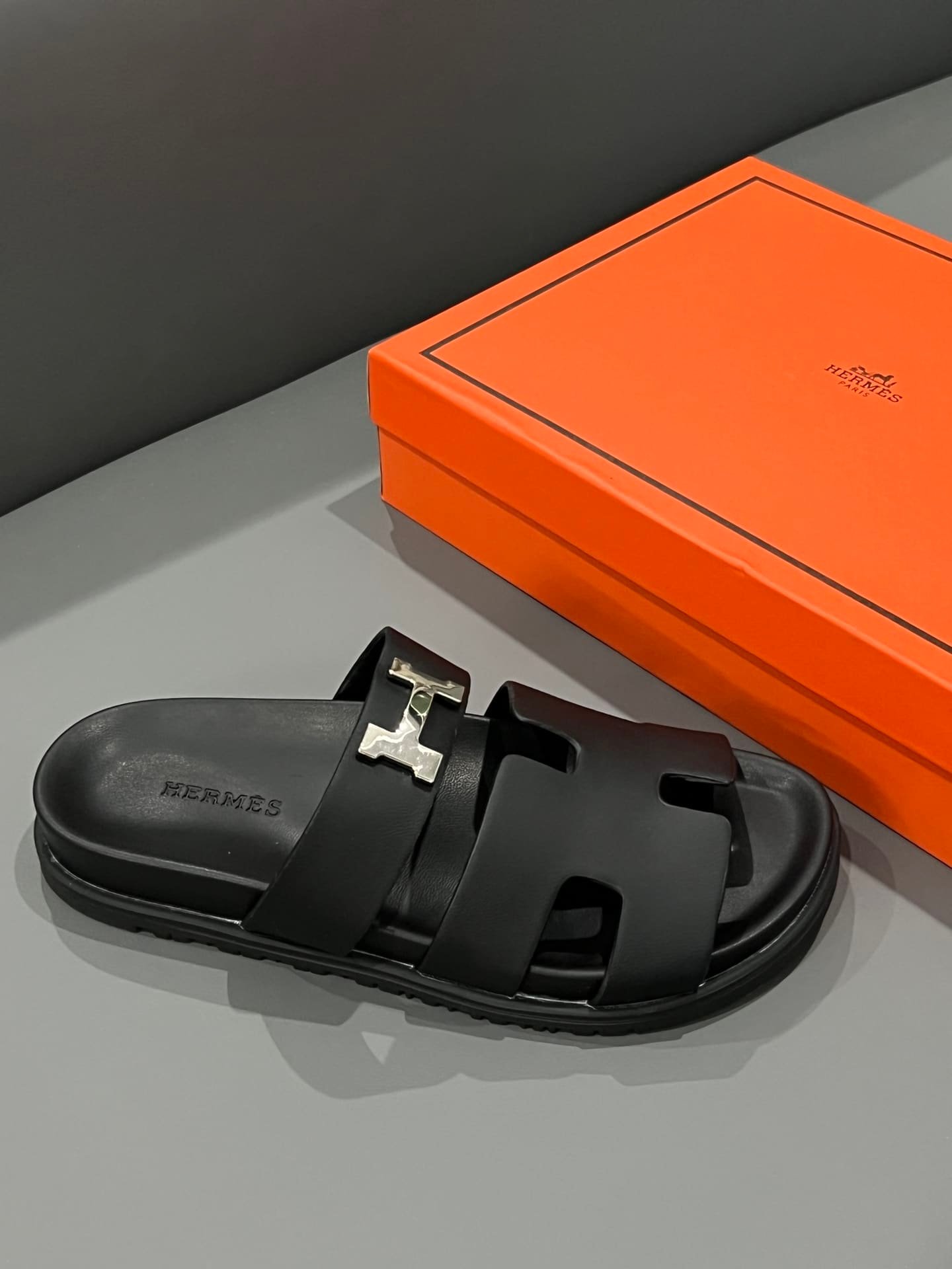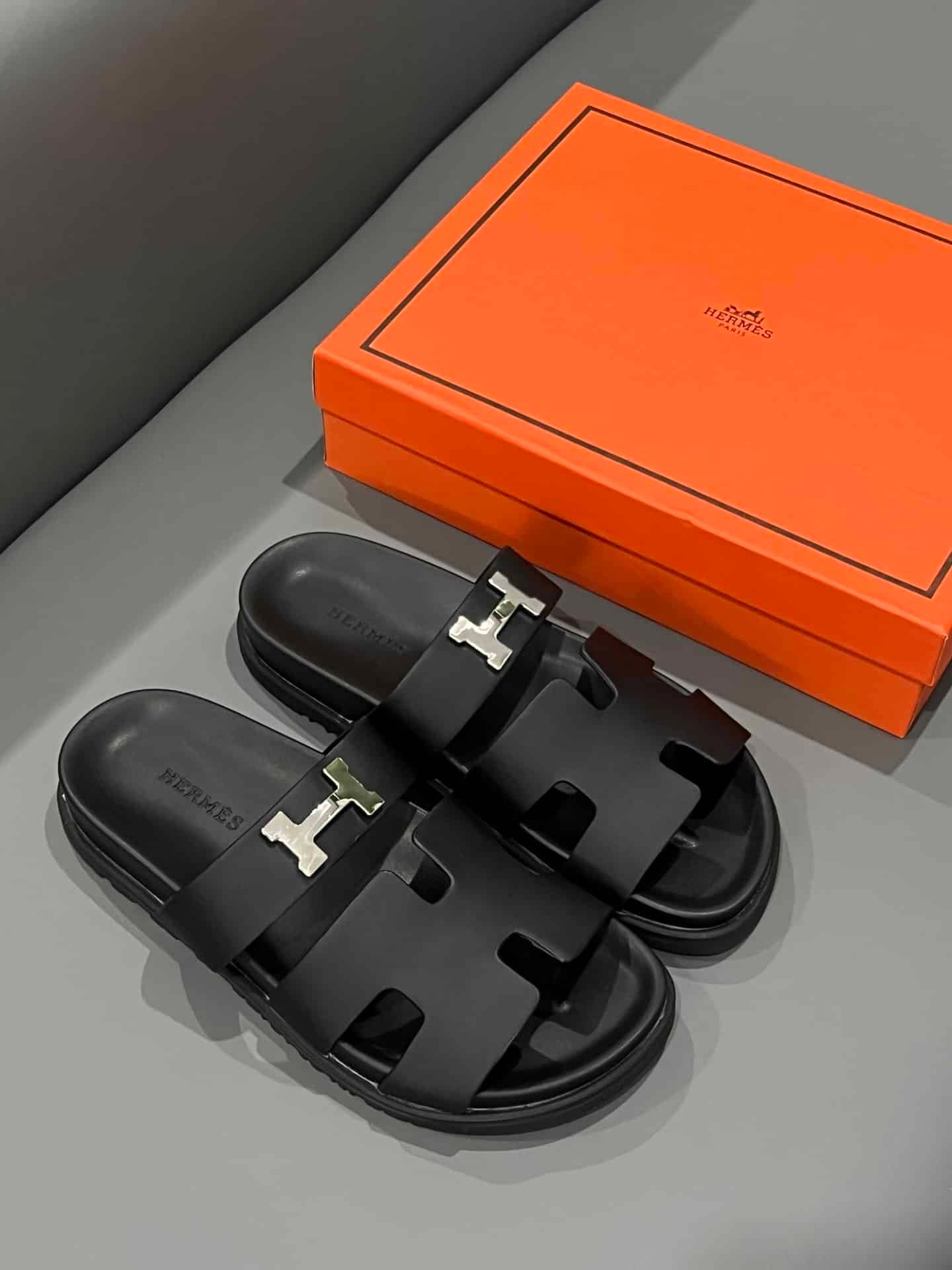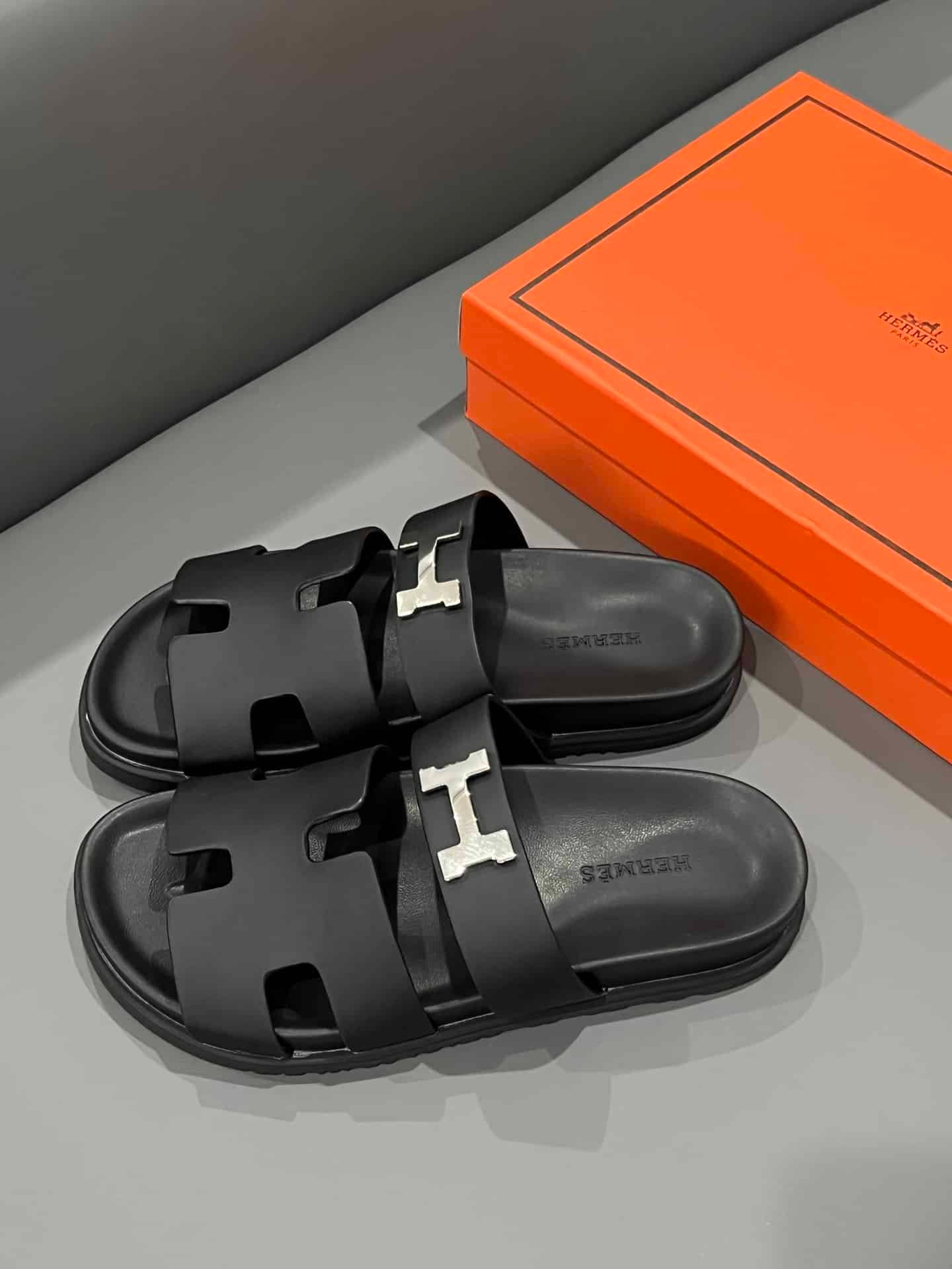 Hermes Chypre Sandal H Logo Silver Hardware Black