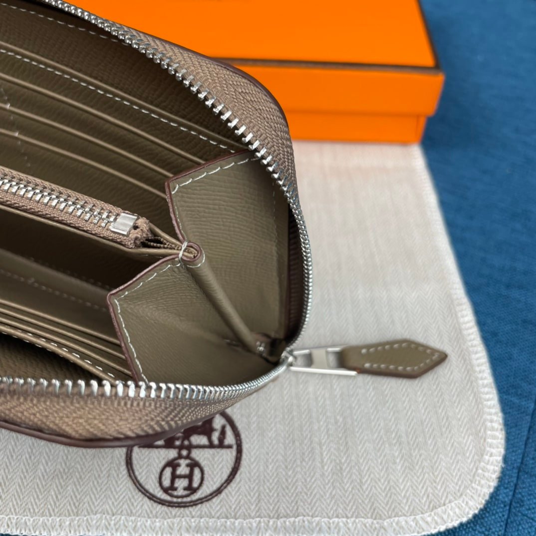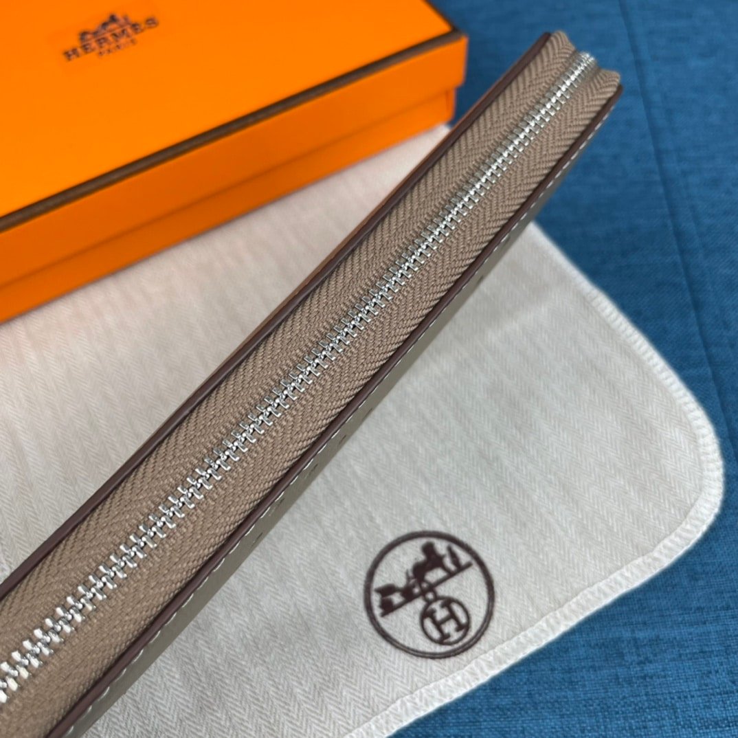 Hermes Evelyne Chevre Leather Zip Long Wallet Grey 19Cm