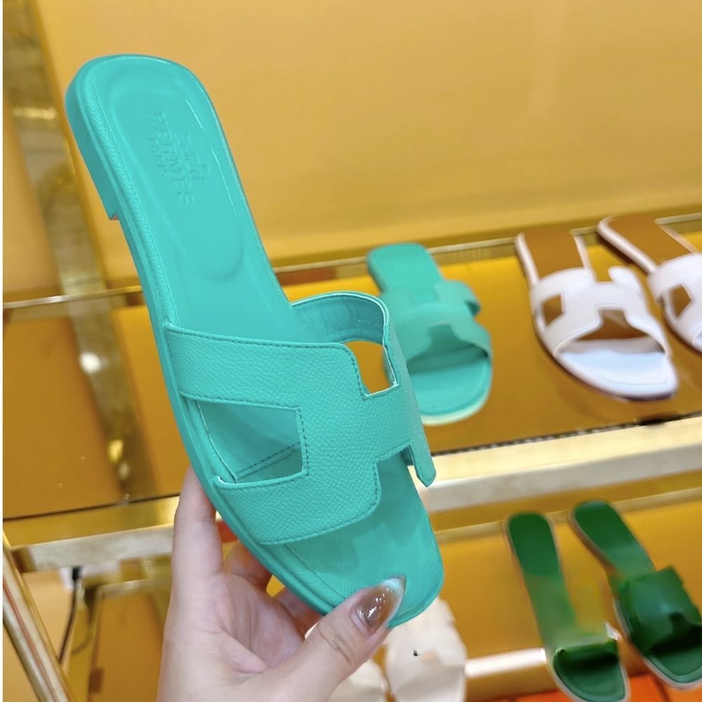 Hermes Slippers Flat Oran Turquoise H202272Z 6H365
