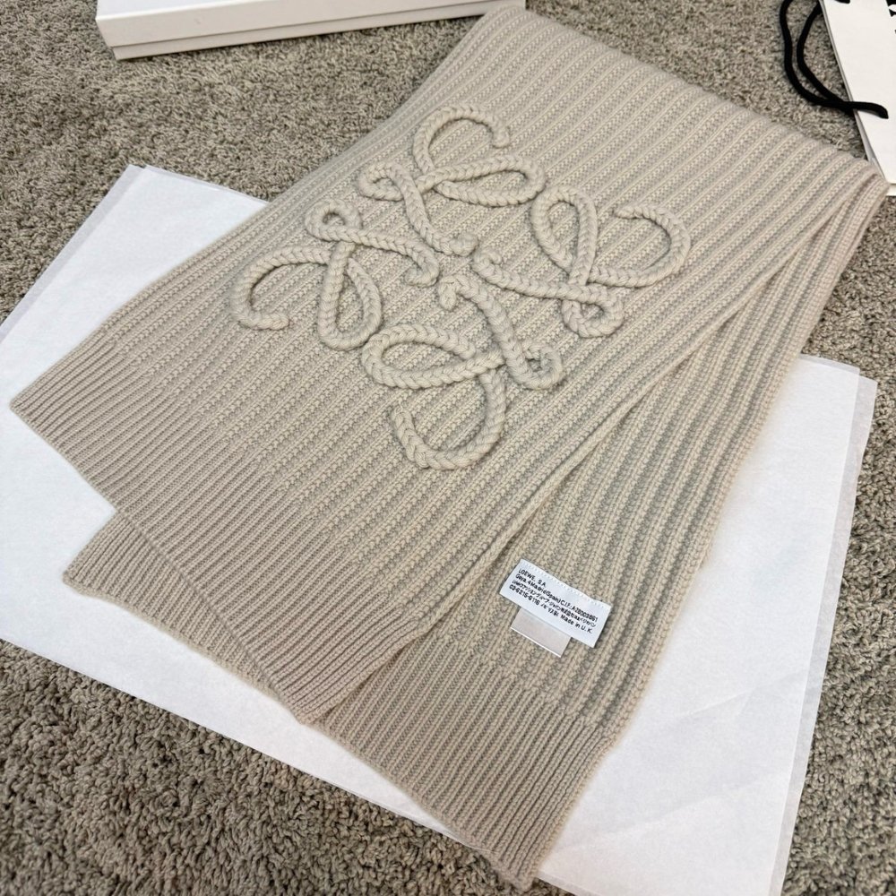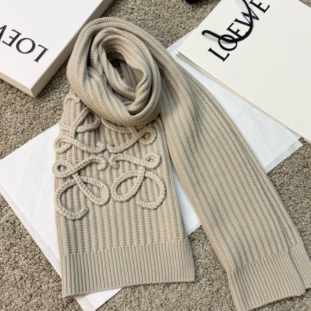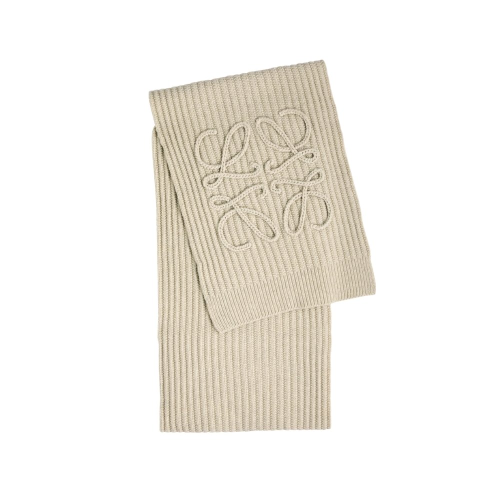 Loewe Anagram Embroidered Ribbed Wool Scarf Beige 180Cm