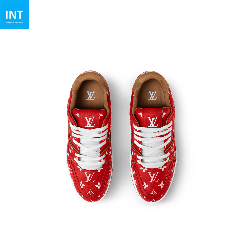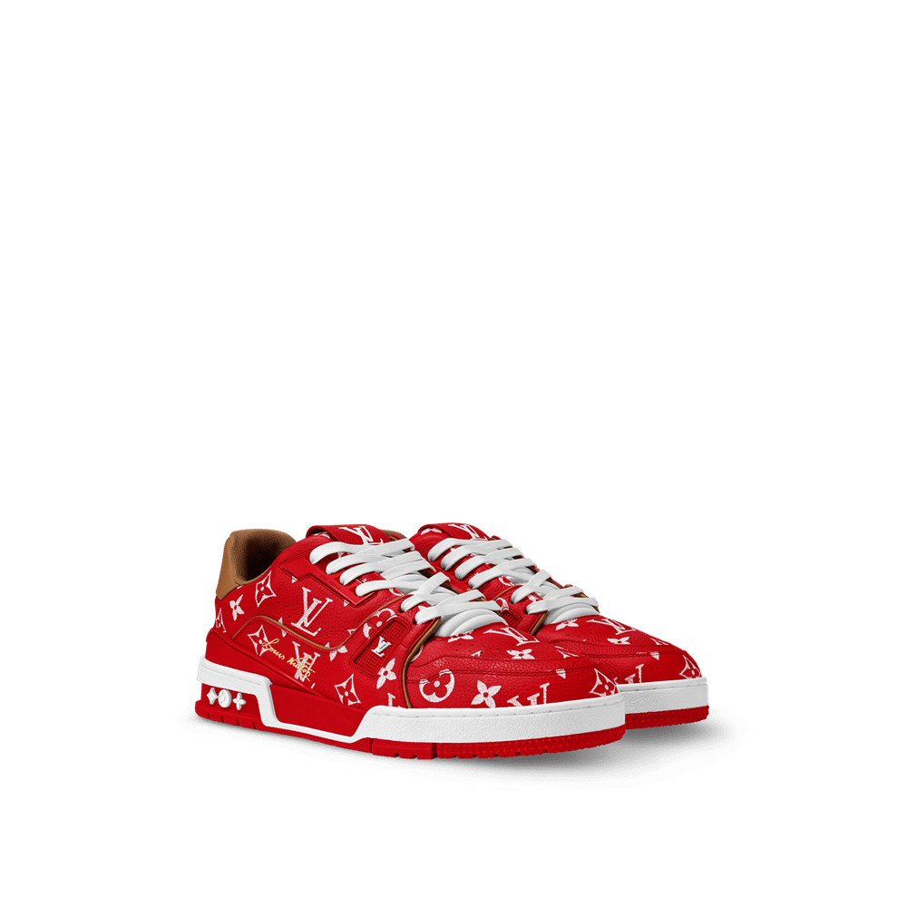 This exclusive edition of the LV Trainer sneaker coordinates with the Speedy P9 bag, an iconic design revisited by Pharrell Williams. It is crafted from exceptionally soft calfskin, similar to that of the bag, and printed with the Monogram pattern. The sneaker’s construction has also been reworked to enhance its suppleness. Key details are the Louis Vuitton script signature and #54 on the vintage leather trim at the back.