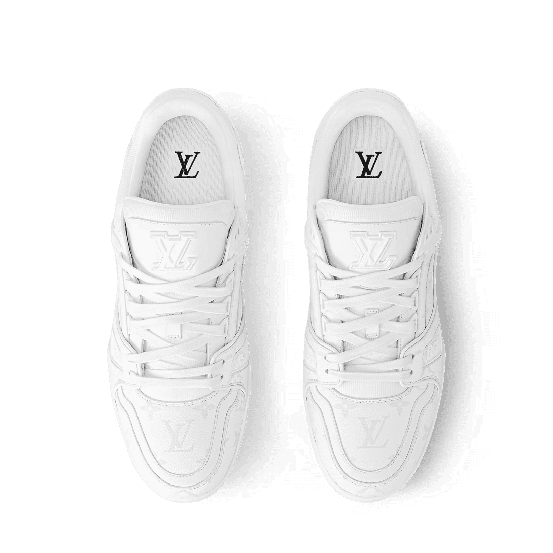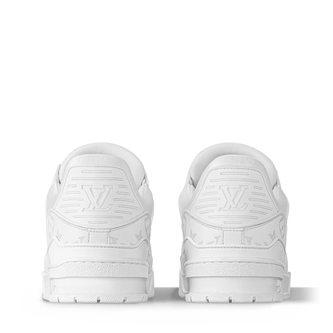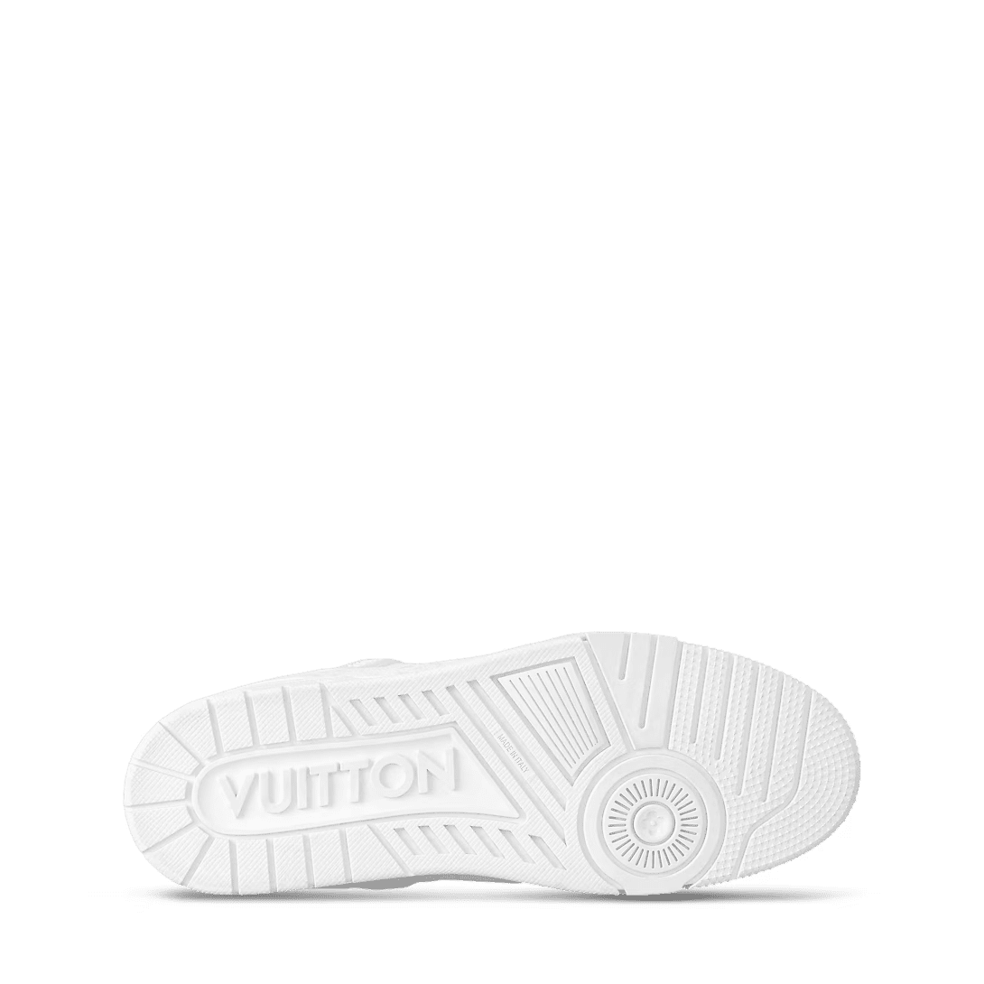 The LV Trainer sneaker is reinterpreted this season in a smart monochrome version in grained calf leather partially decorated with the Monogram pattern. Originally designed by Virgil Abloh, this iconic model was inspired by vintage basketball sneakers. It is notable for its rubber signatures and elaborately constructed upper, made of more than 80 pieces