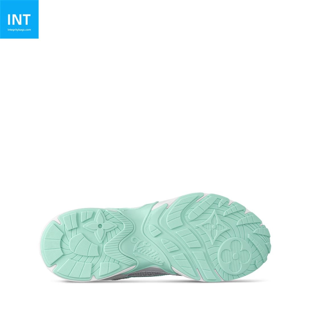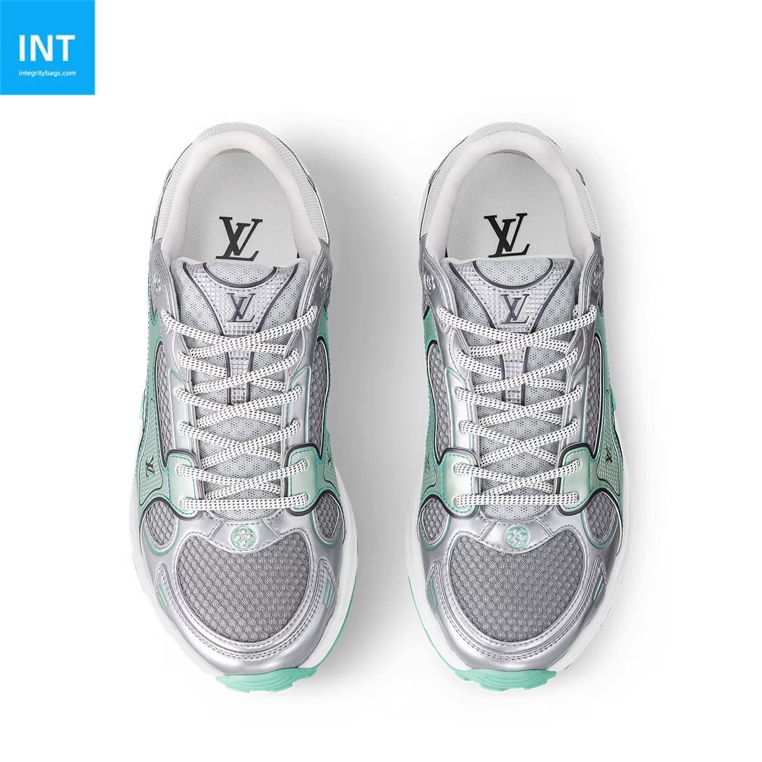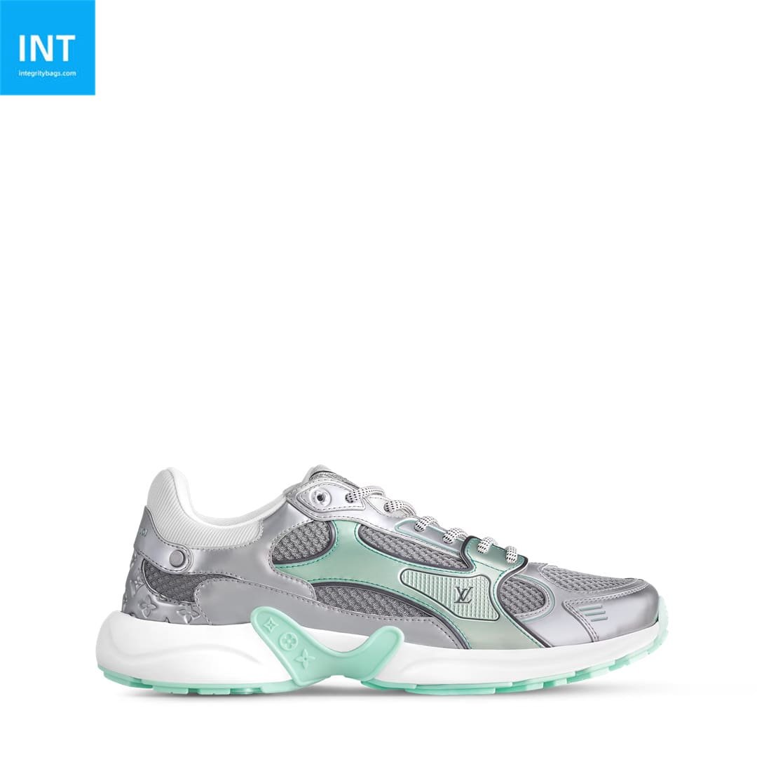 The LV Olympia sneaker takes inspiration from running shoes for its sporty, streamlined design. The elaborate upper is constructed from a mix of technical materials, including mesh and metallic synthetic leather, and is characterized by its many signature details. The lightweight EVA outsole, which is decorated with Monogram Flowers, is engineered for bounce and comfort.