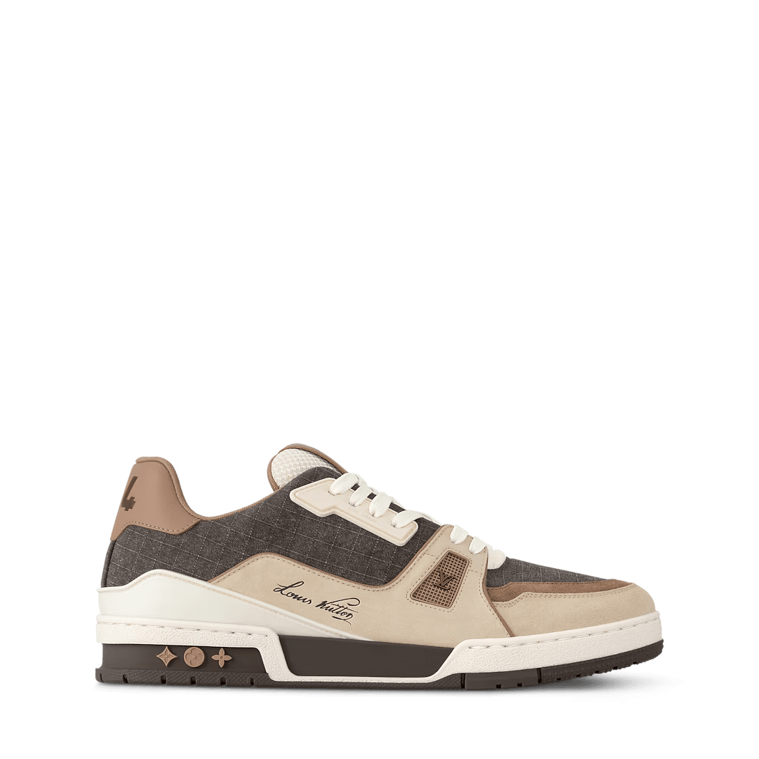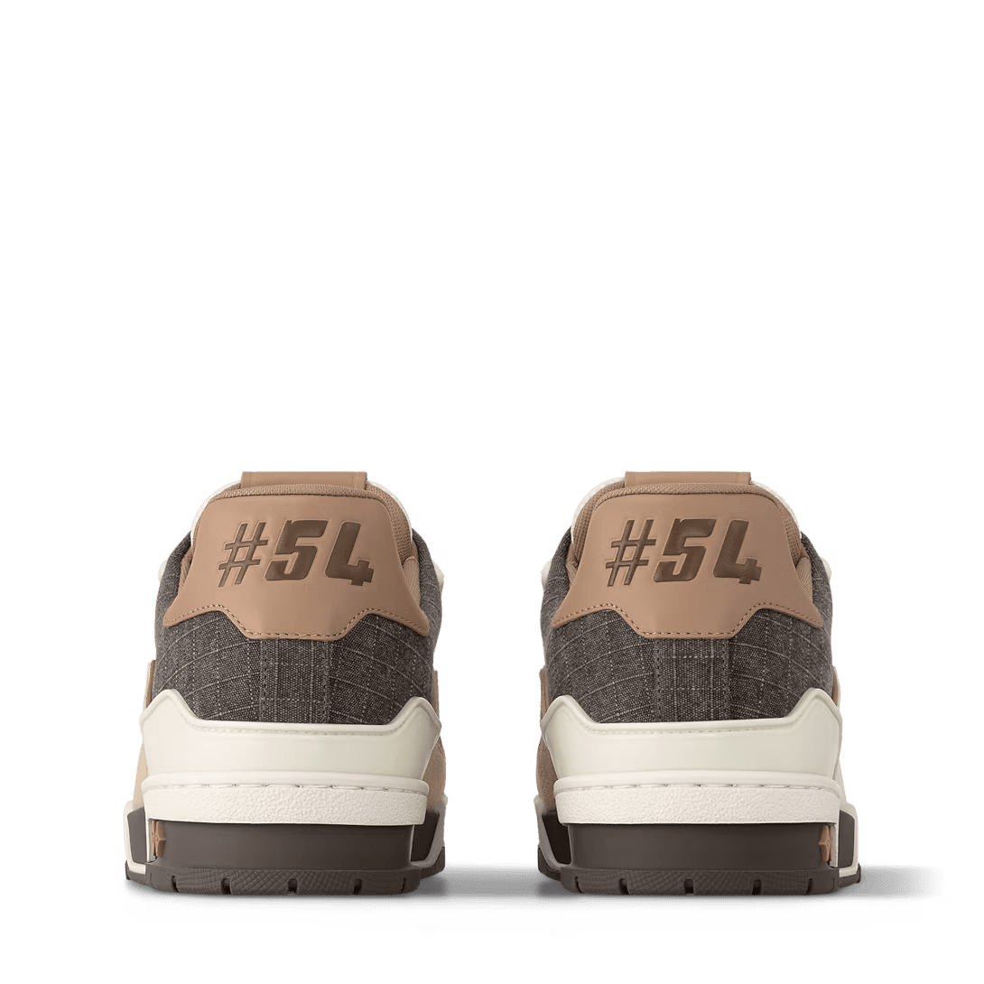 This edition of the LV Trainer sneaker comes in a mix of technical materials with water-repellent properties. The elaborately constructed upper is notable for its many signature details, including Louis Vuitton in script lettering and #54, referring to 1854.