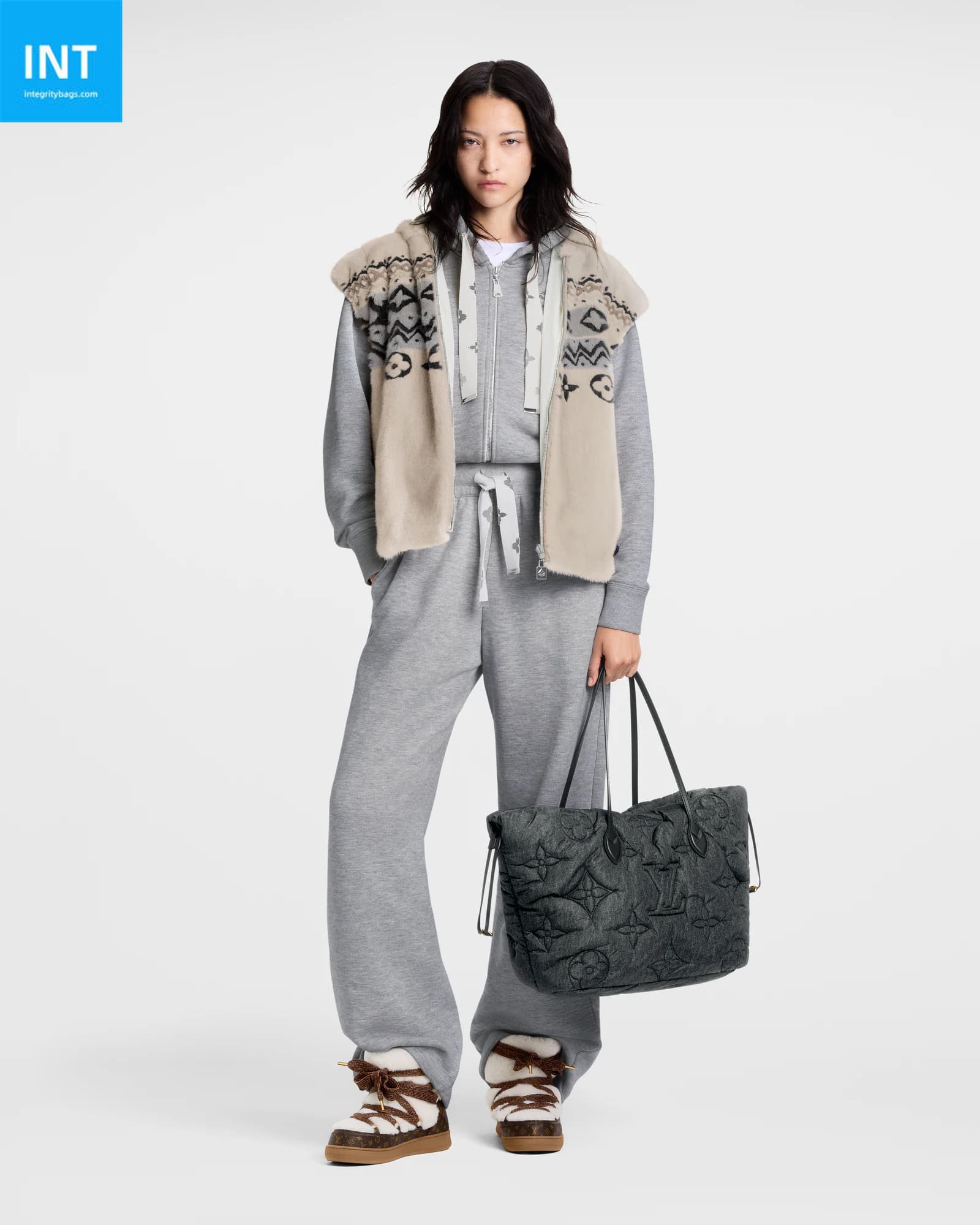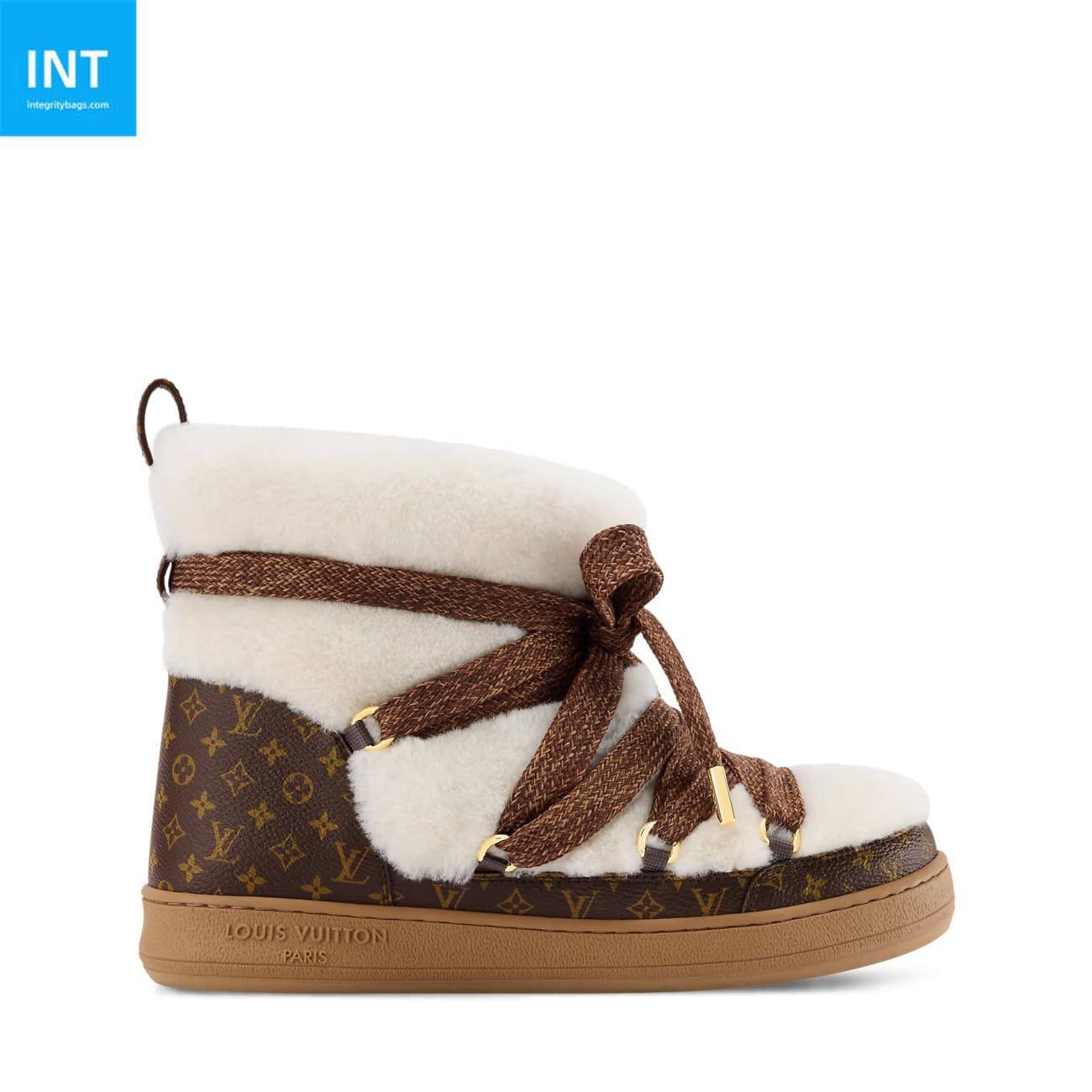 The LV Cloud lace-up ankle boot sneaker teams snug shearling with iconic Monogram canvas for warmth, comfort and a striking signature look. This stylish model, which belongs to the LV Ski capsule, will transition effortlessly from the slopes to city streets. It features crisscrossing laces with gold-toned eyelets and a rubber outsole with the Louis Vuitton signature.