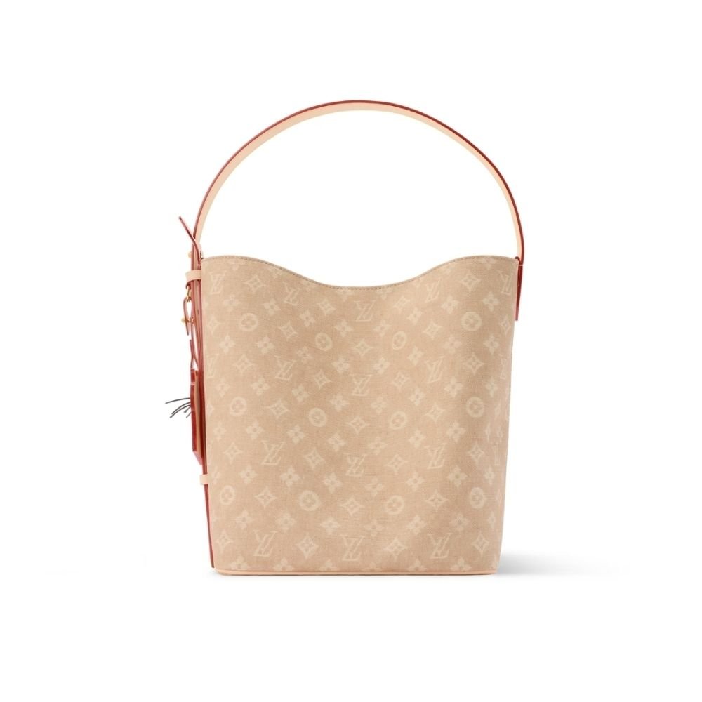 Part of the LV Travels With Grace Coddington collection, this special edition All In GM bag features a Meowgram pattern created by artist and fashion icon Grace Coddington. Crafted from canvas with cowhide leather accents, it includes a cute cat-shaped key holder and a detachable zippered pouch. With its practical bucket bag design, it can comfortably hold everyday items like a laptop.